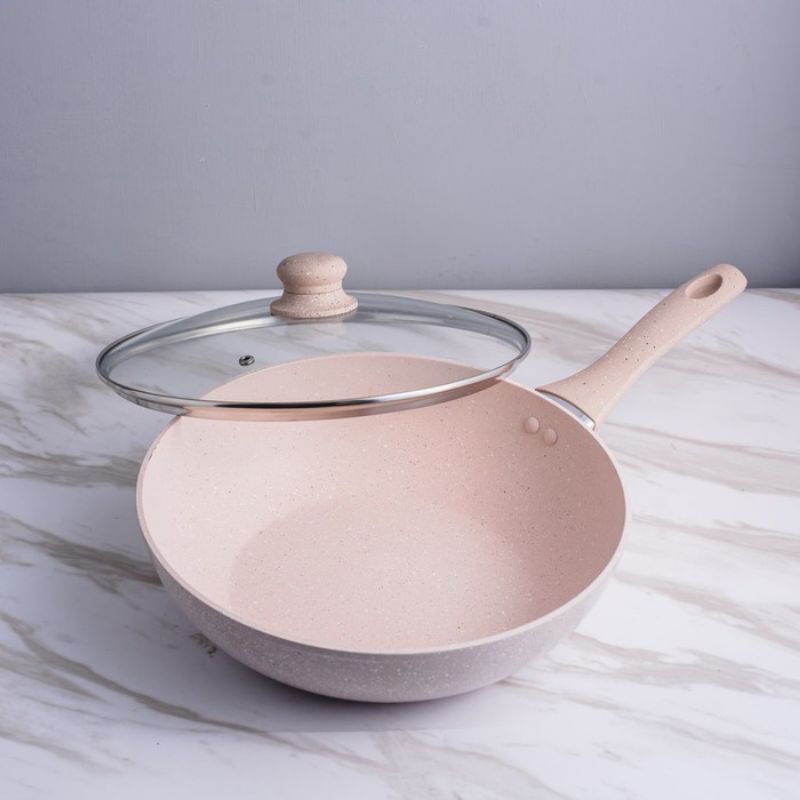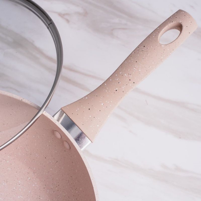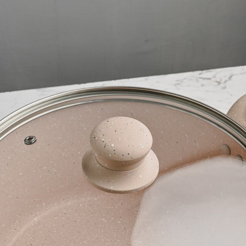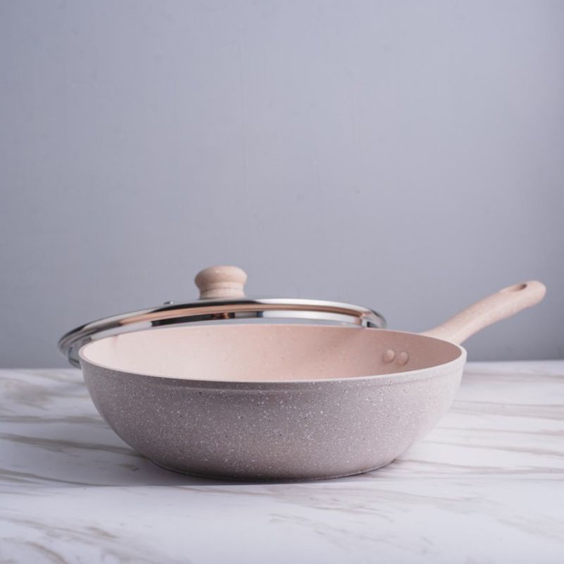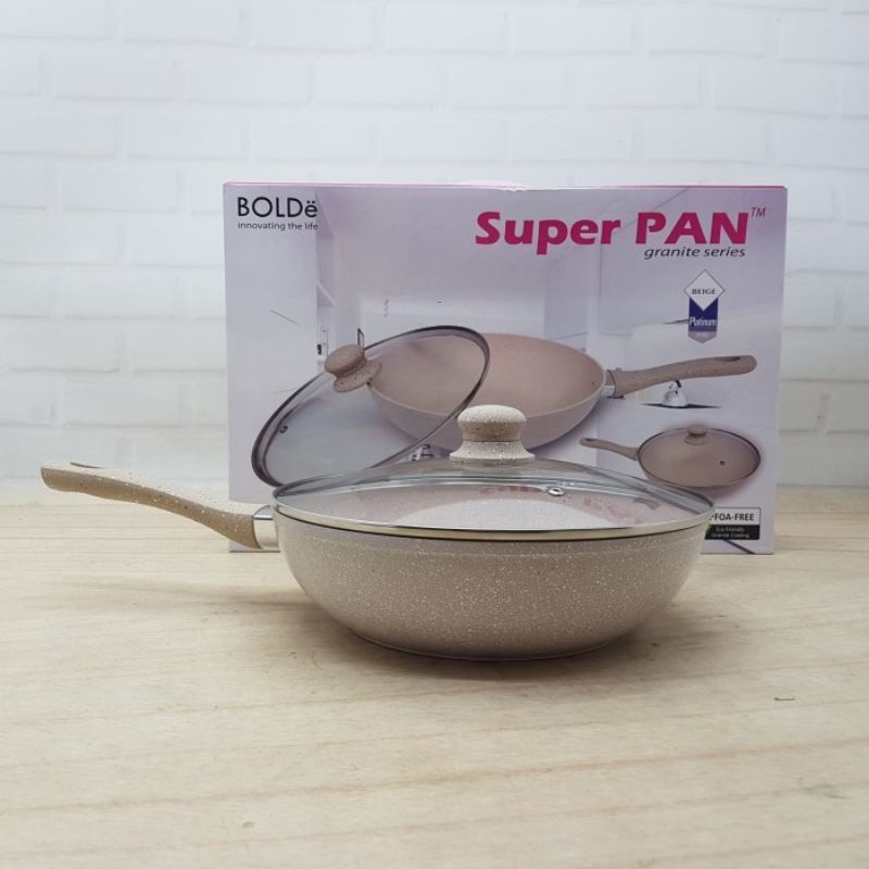 Super PAN WOK ( WAJAN ) 28 cm + GLASS LID Granite Beige Original BOLDe