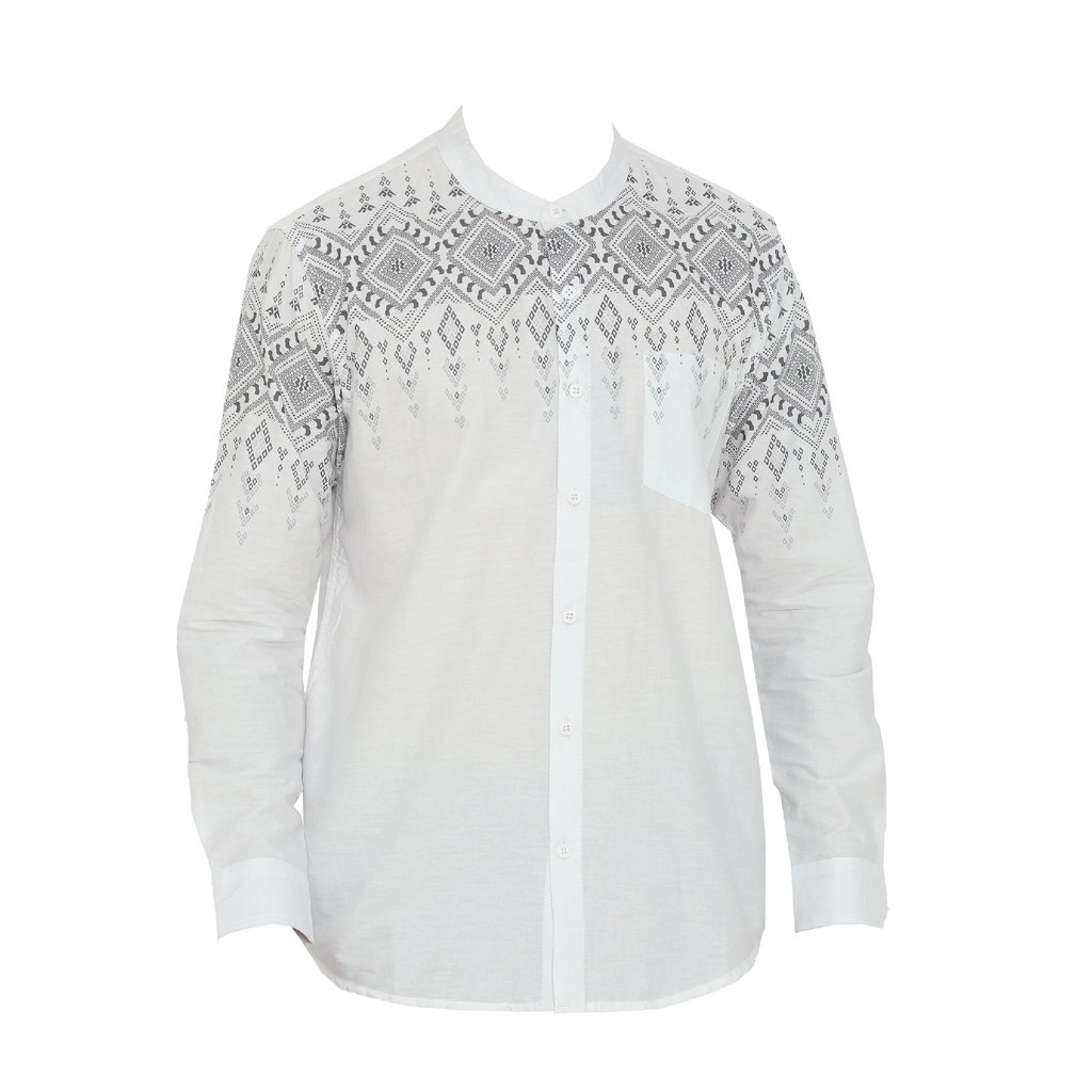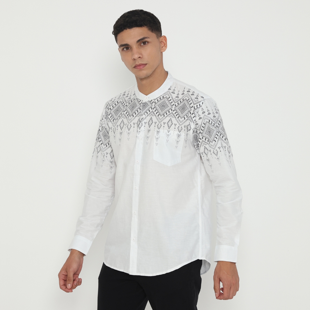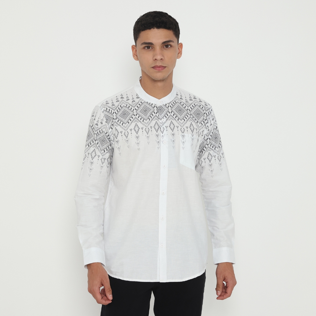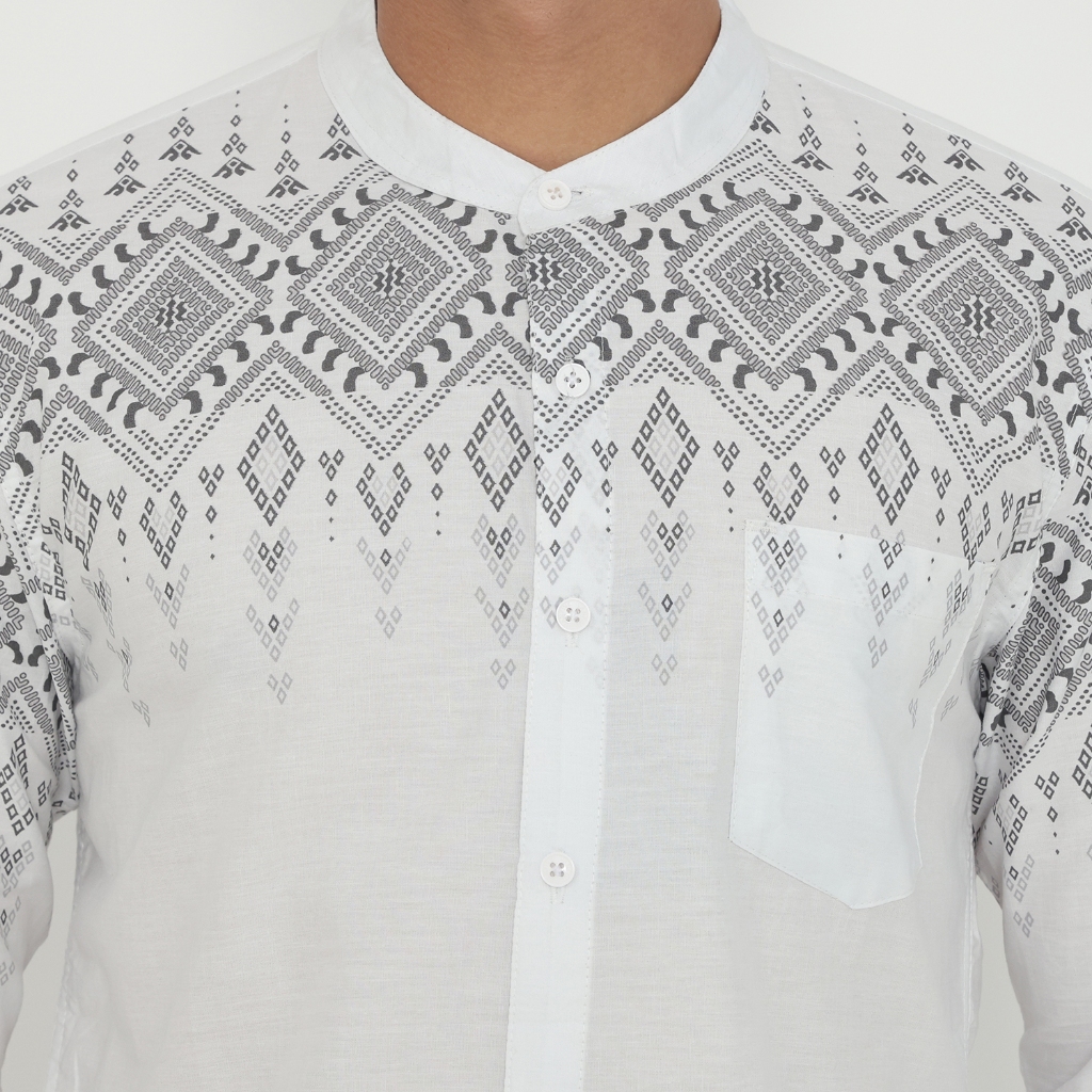 Vanfive Kemeja Koko Batik Shanghai Pria Lengan Panjang Slim Fit ARKANA - Putih