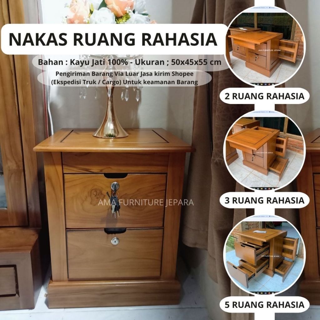 BEDSIDE TABLE NAKAS LACI RAHASIA - MEJA NAKAS RAHASIA - NAKAS RAHASIA - LEMARI RAHASIA KAYU JATI