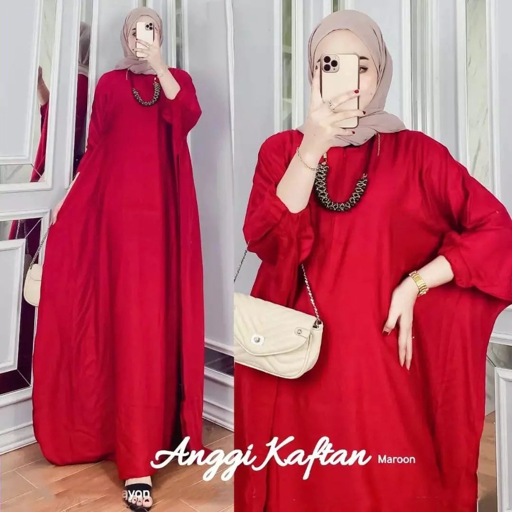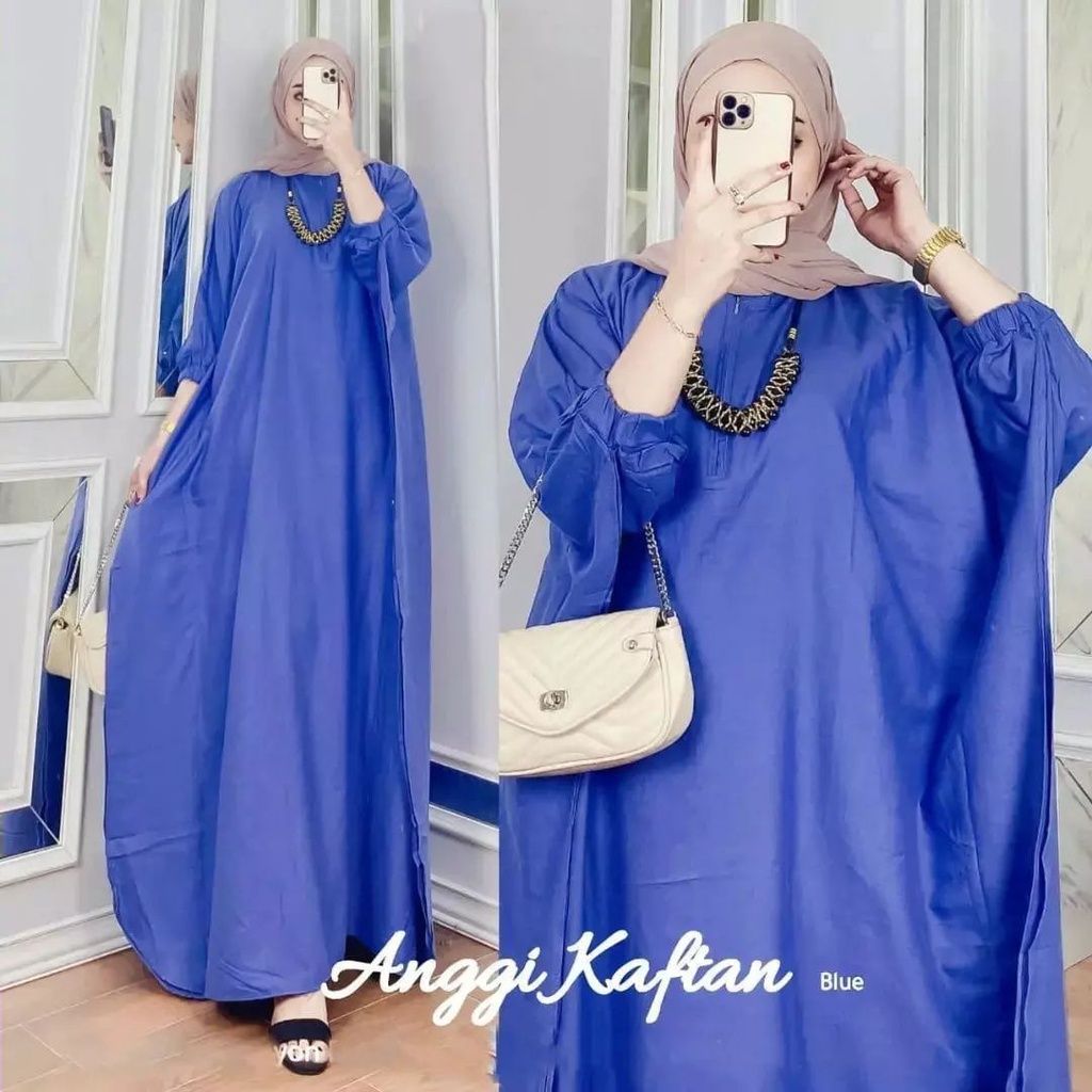 ANGGI KAFTAN Bahan KATUN RAYON Dress Kondangan Model Terbaru Kaftan Wanita Simple Elegan Kaftan Polos Jumbo (Lengan Karet)