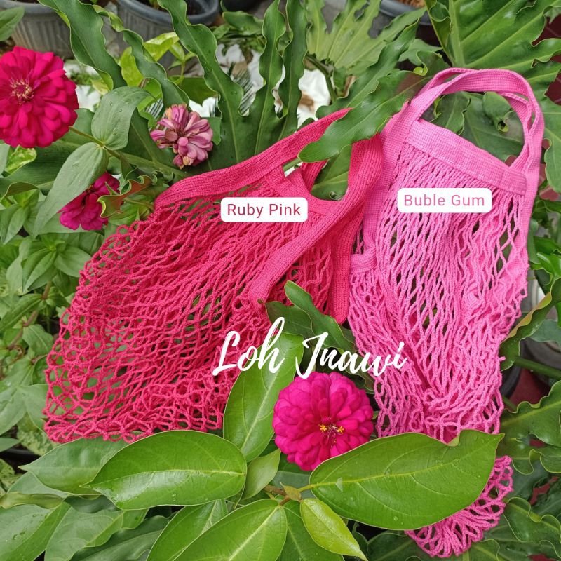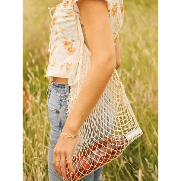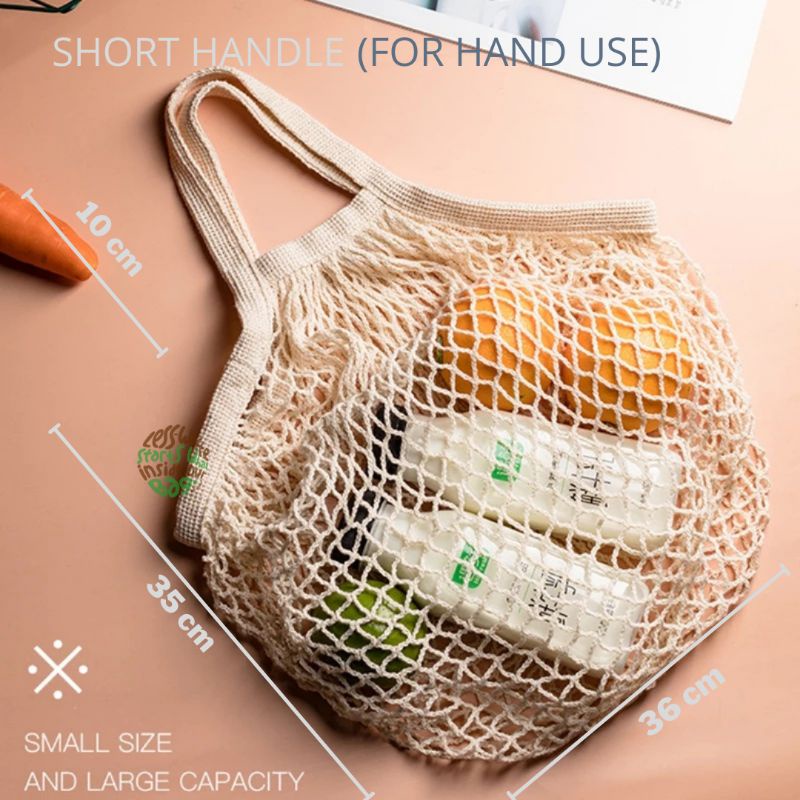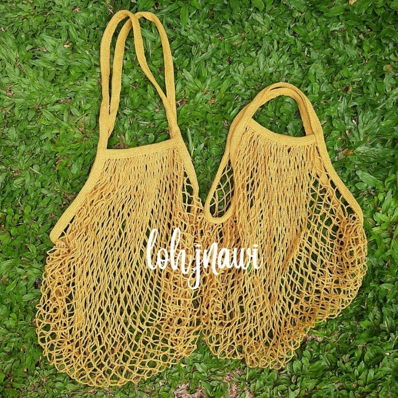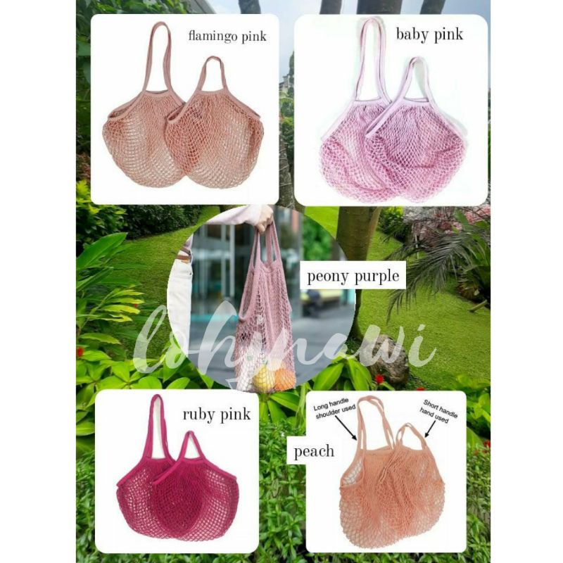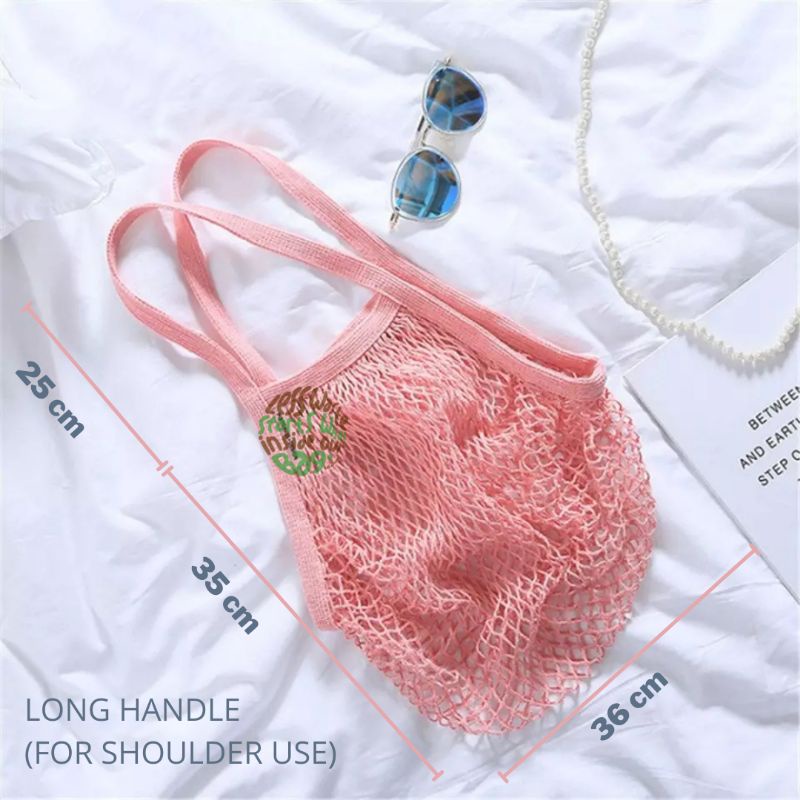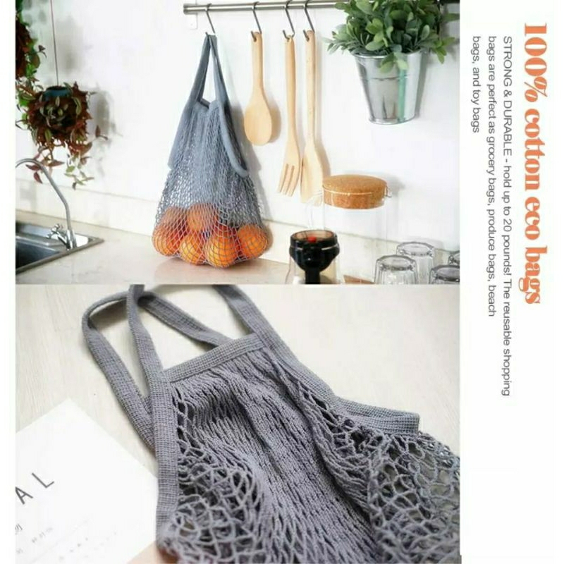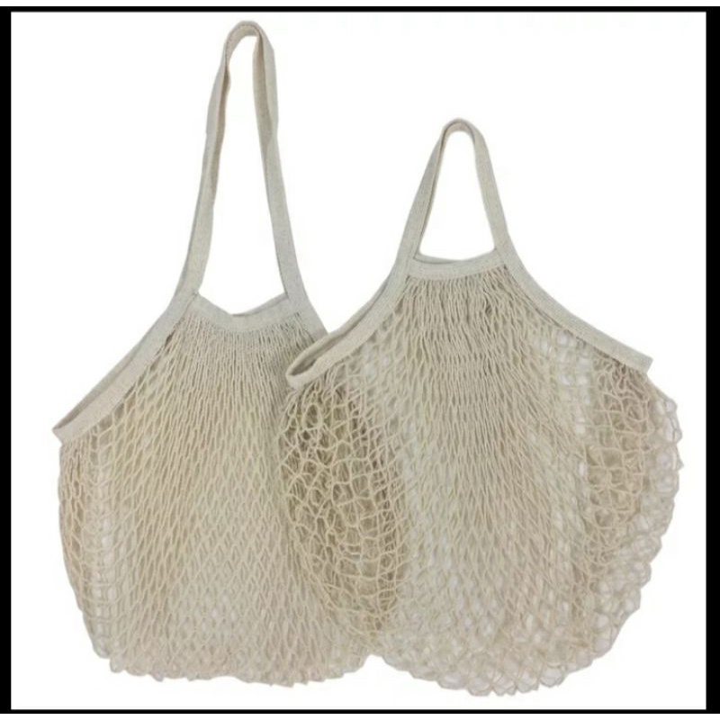 Tas Belanja Jaring Katun Tas Jaring Tas Pantai Reusable Bag Cotton Mesh Bag Net Bag Grocery Bag Fishing Net Tote Bag Tas Ramah Lingkungan