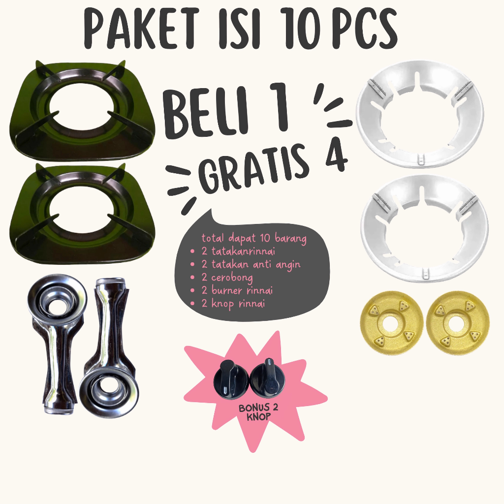 Tatakan kompor gas rinnai tungku kompor gas rinnai burner kompor gas rinnai knop kompor gas rinnai paket isi 10 barang