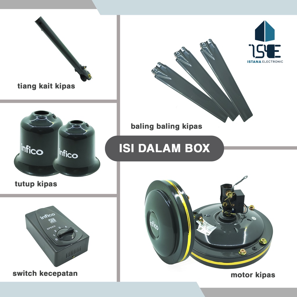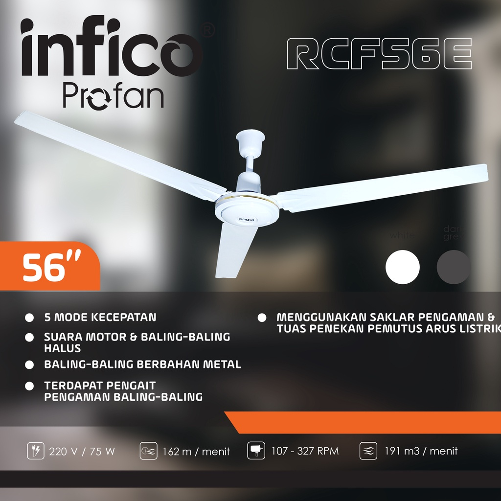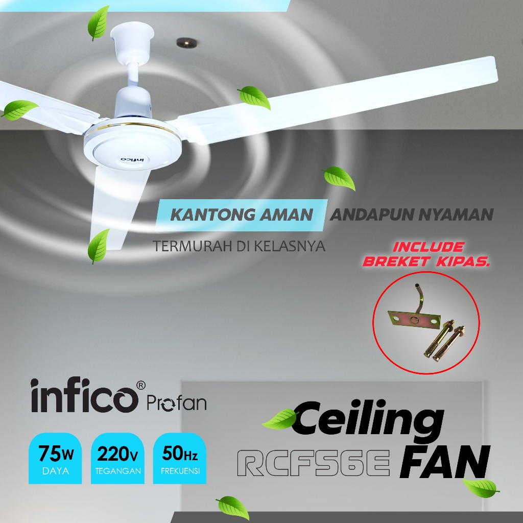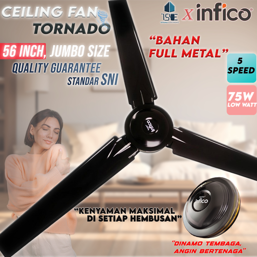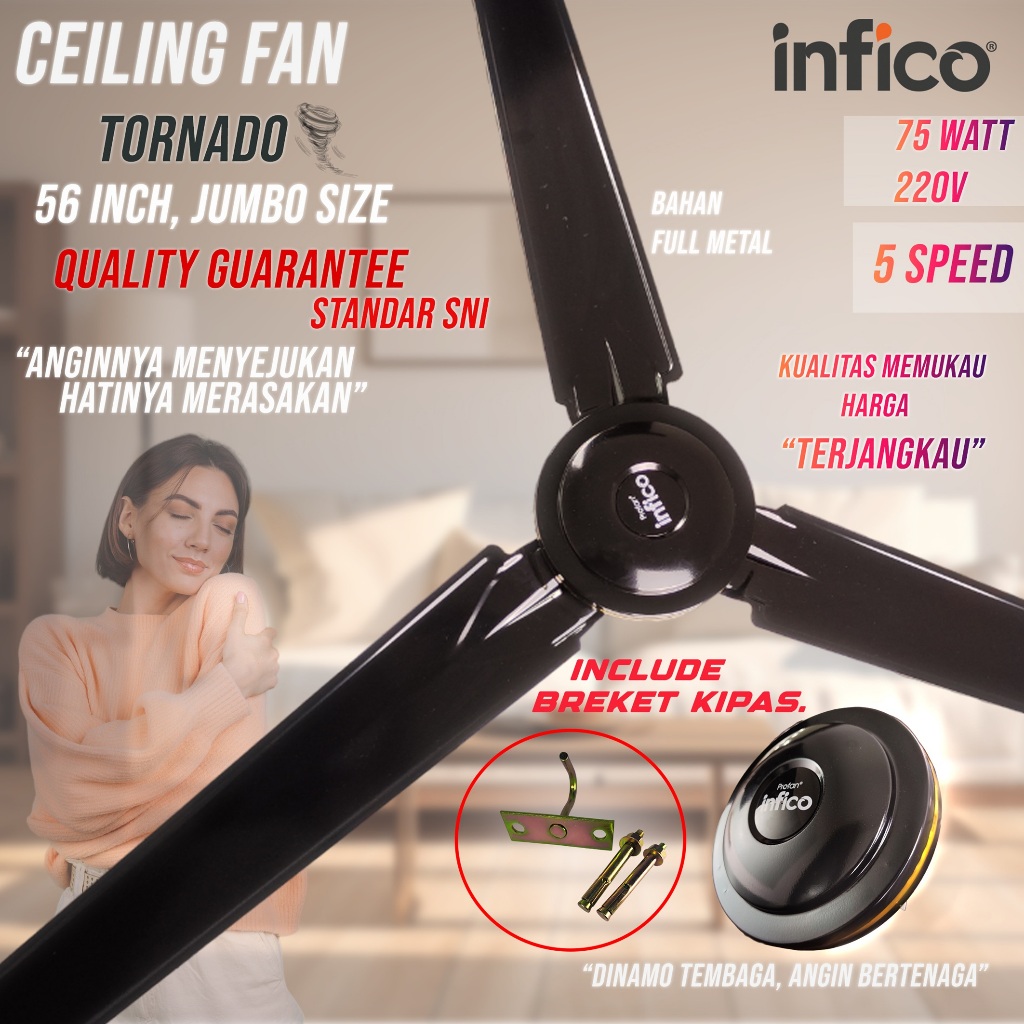 KIPAS ANGIN GANTUNG 56" 3 DAUN ANGIN KENCANG TORNADO ASLI INFICO, + BREKET, FULL BESI, DENGAN 2 BEARING, MOTOR TEMBAGA ASLI + FREE BUBBLE DAN KARDUS +