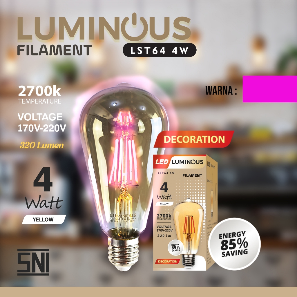 Lampu Led Filamen Grade A+ PREMIUM 4WATT Kaca Tebal Lampu Edison, Tahan air, Anti Panas, Hemat,Dekor