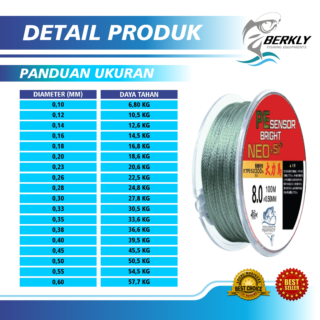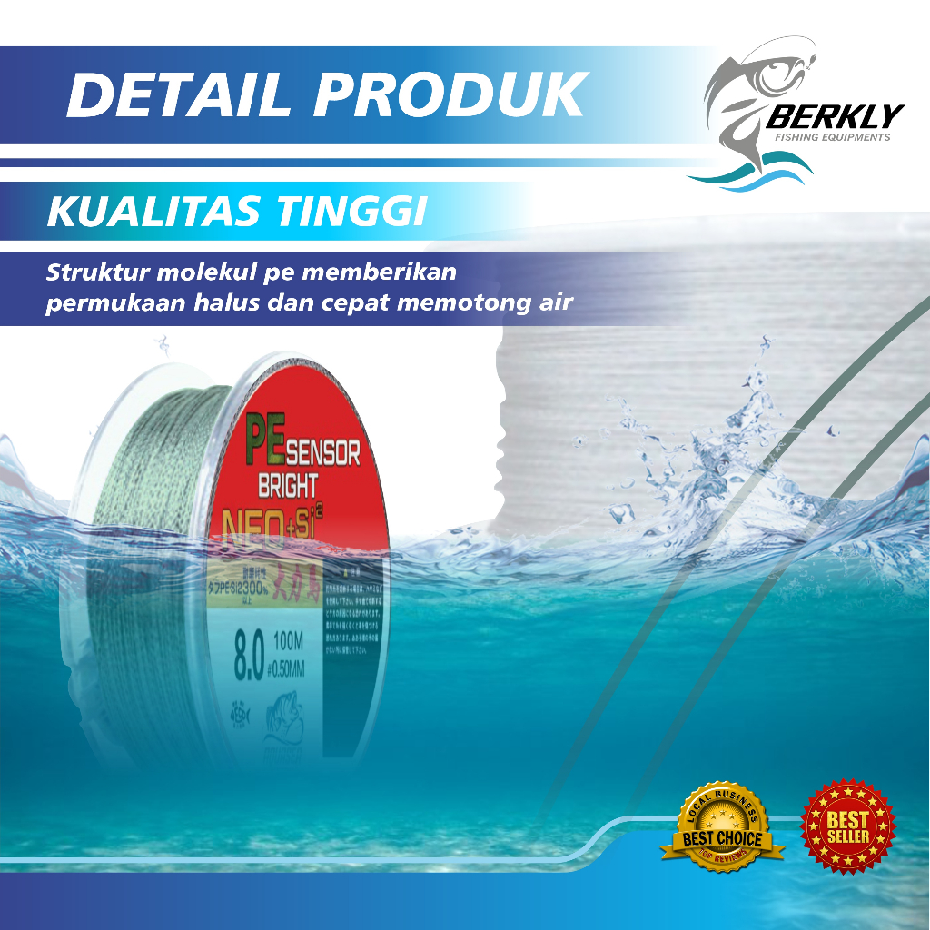 BERKLY - Tali Pancing 100m Senar Pancing PE Sensor Bright Warna Hijau Sensor NEO+si2 Jepang Senar Pancing 100m Super Kuat Bahan PE