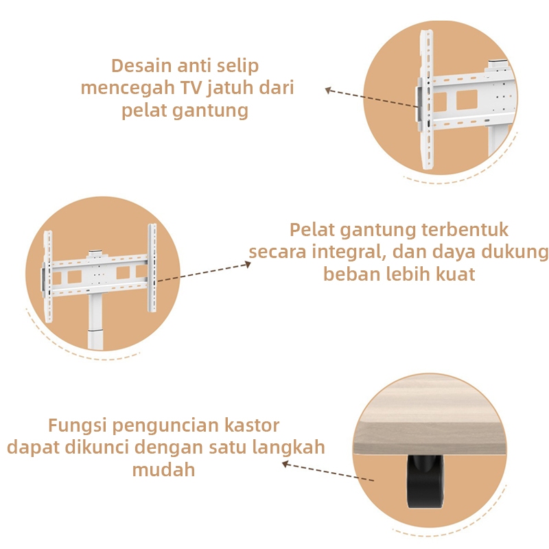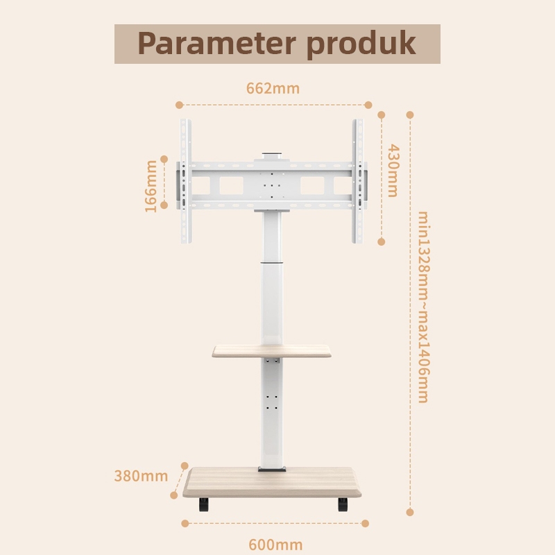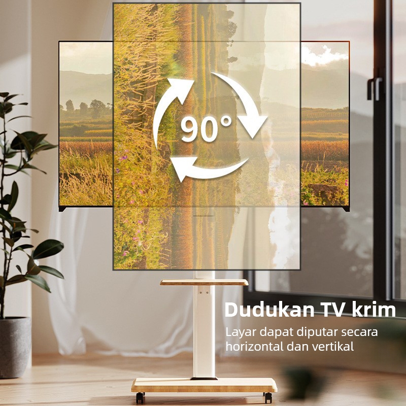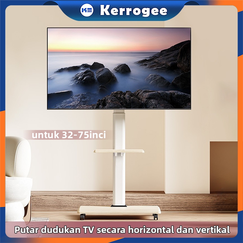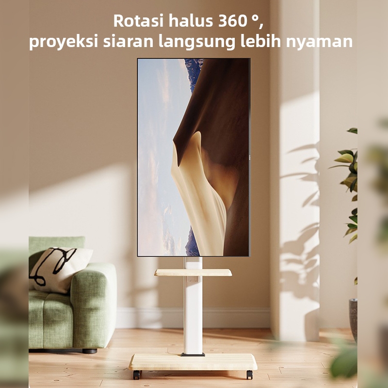 [Dapat diputar 360°]Bracket Standing TV roda dorong LED TV 32"- 75" + Tray putih Itu dapat diputar ke atas dan ke bawah