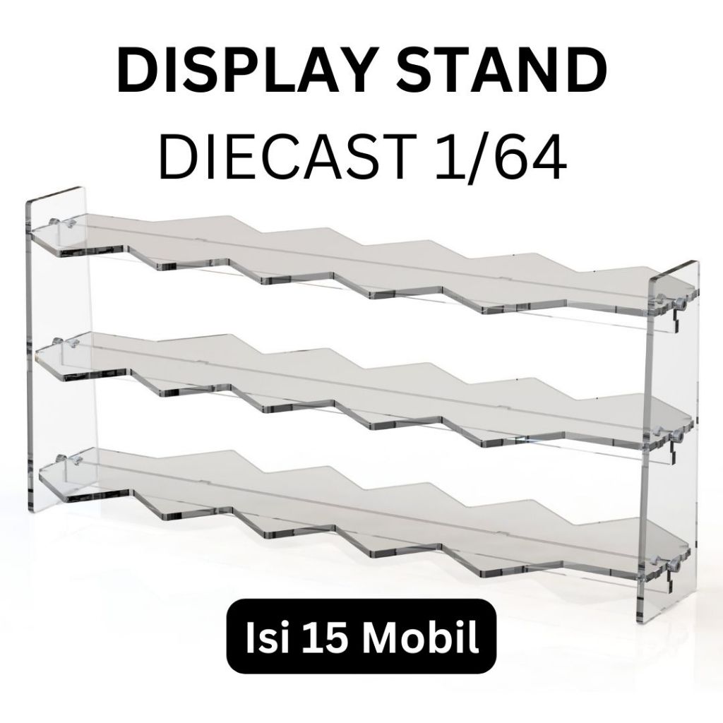 Display Stand Rak Akrilik Diecast HotWheels Serong isi 15 Mobil