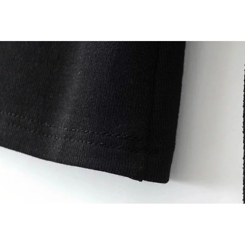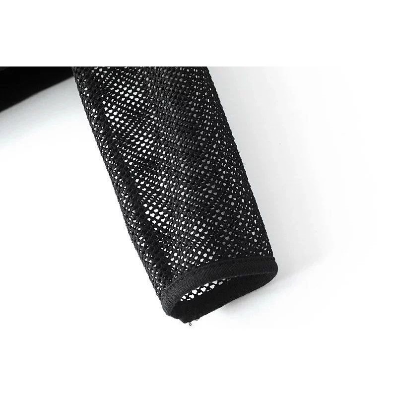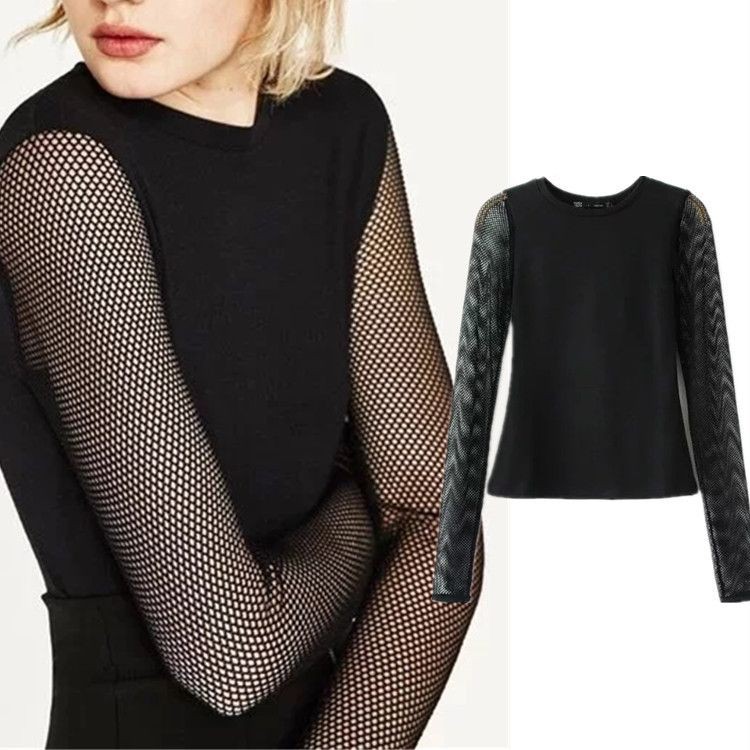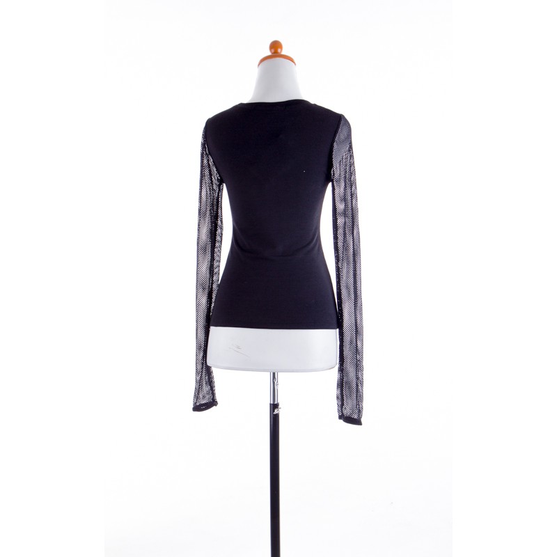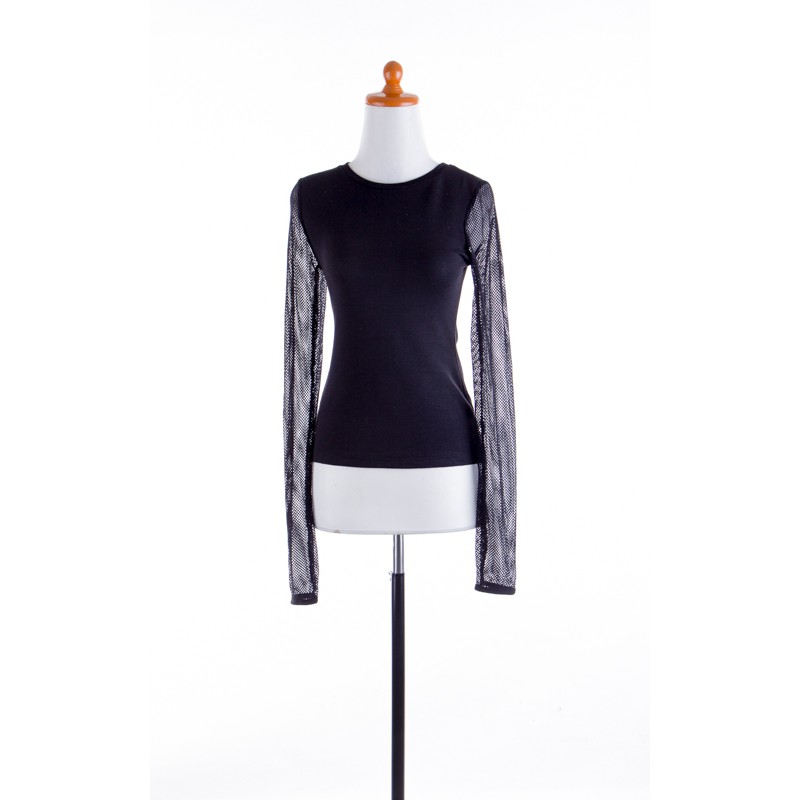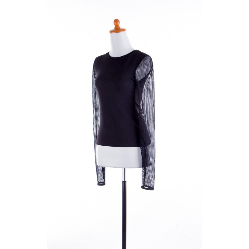 Blouse Lengan Panjang Import - 43385 Black Sleeve Knit Mesh Casual Top