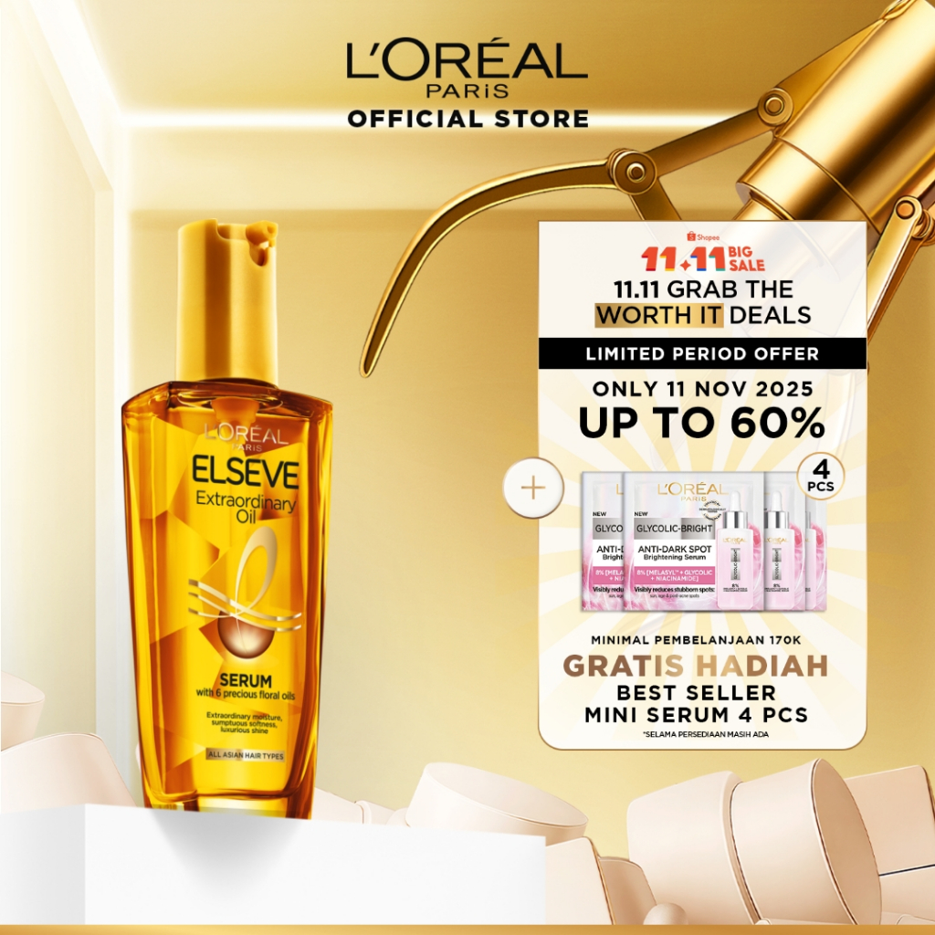 L'Oreal Paris Elseve Extraordinary Oil Gold Hair Treatment Serum 100ml - Rambut Halus Berkilau dalam Satu Pemakaian - dari Bunga Istimewa Omega 3 - Perawatan Rambut Vitamin Rambut 100ml Vitamin rambut