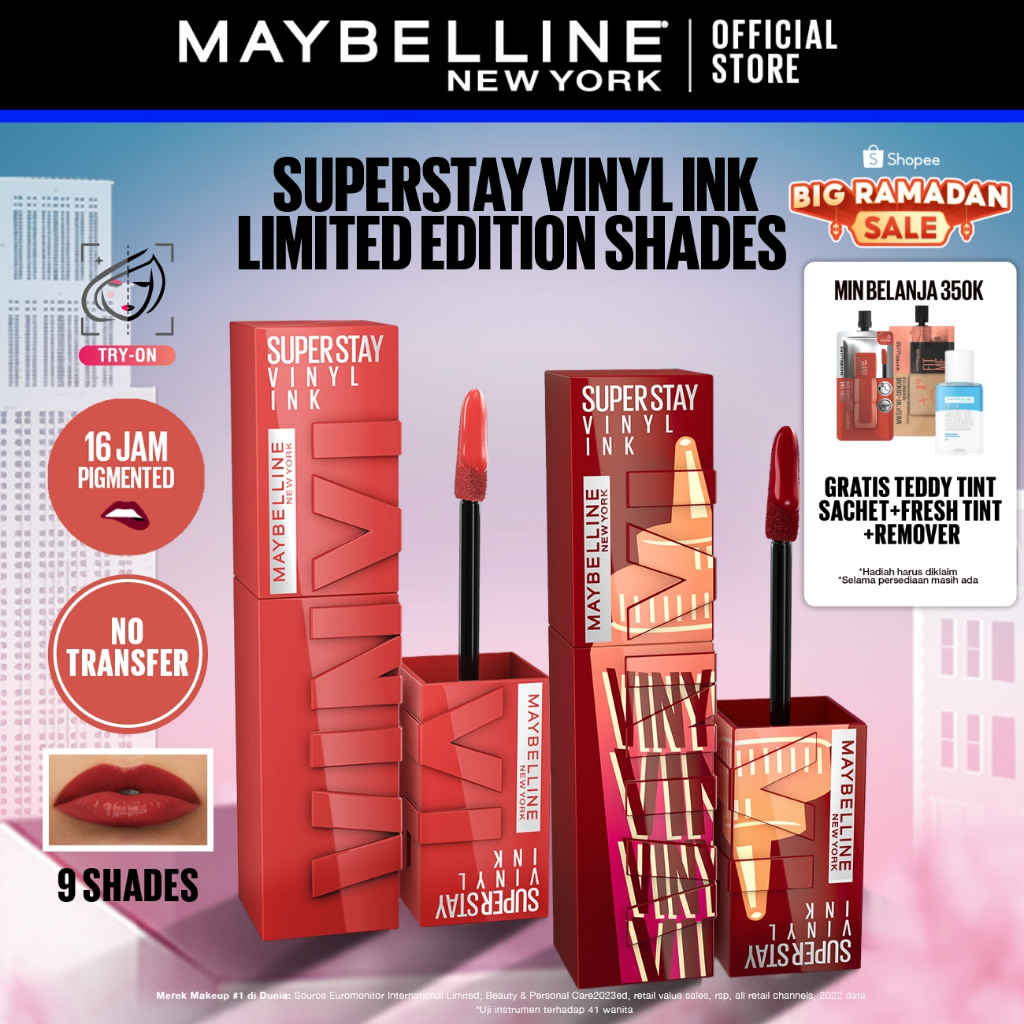 MAYBELLINE OFFICIAL Superstay Vinyl Ink 4.2 ml LIMITED EDITION - Shiny Pigmented Liquid Lipstik Lipstick
