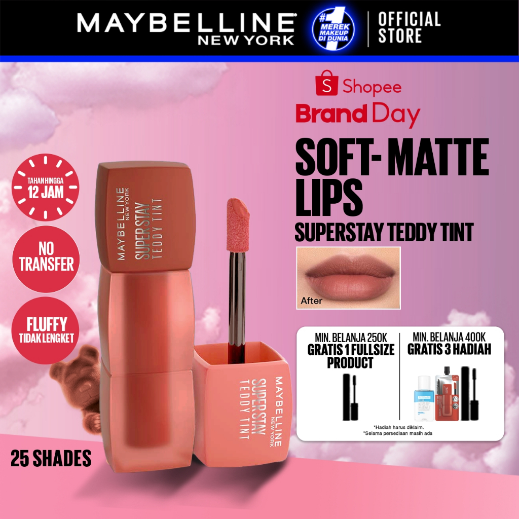 Maybelline Superstay Teddy Tint 5 mL - Teddy Soft Matte Tahan 12 Jam Lipstick Lipcream Lipstik Perfect Lip Tint