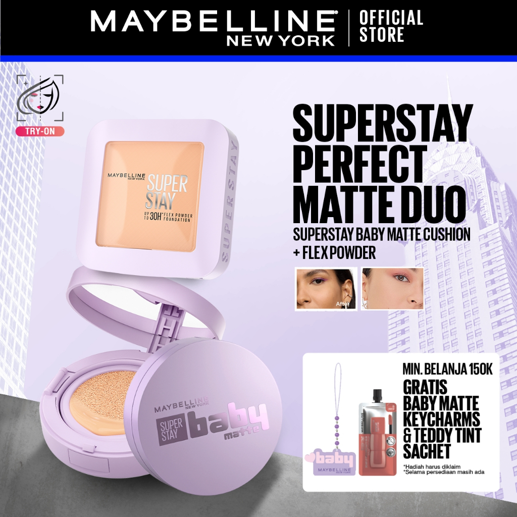 MAYBELLINE OFFICIAL Superstay Unbreakable Duo - Superstay Baby Matte Cushion + Superstay Flex Powder Foundation