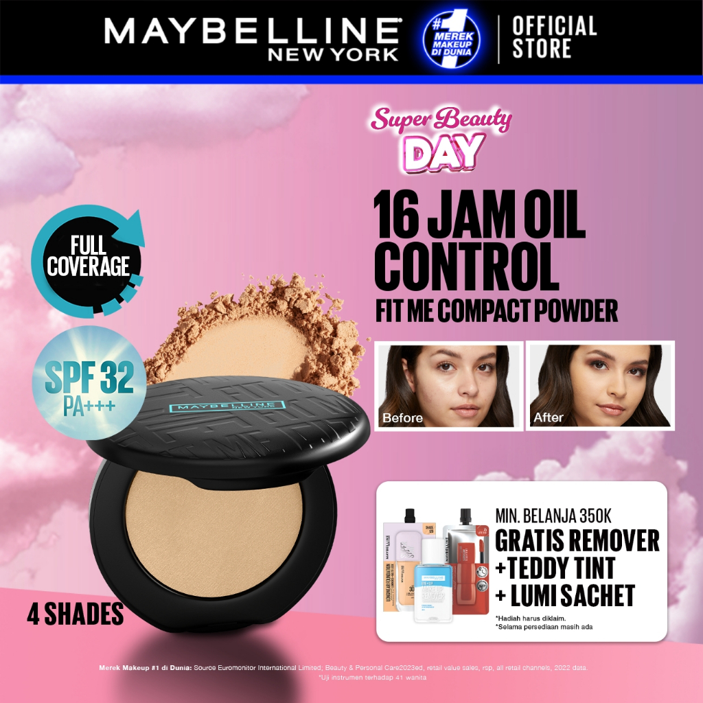 Maybelline Fit Me Matte + Poreless 16 Jam Oil Control Compact Powder Make Up Bedak Padat tahan 16 Jam Superstay Matte Vinyl Hypercurl TWC