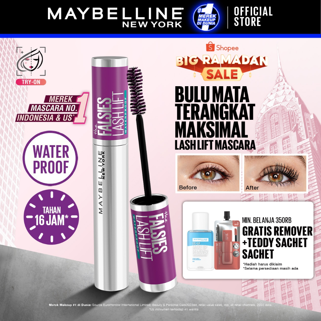 MAYBELLINE OFFICIAL The Falsies Lash Lift Mascara Make Up 8.6ml Waterproof Maskara Bulu Mata Panjang Tahan 16 Jam Volumizing Extending Smudgeproof