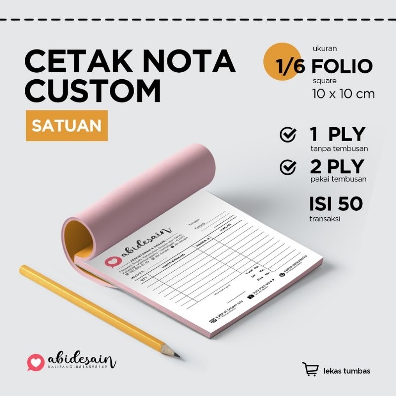 CETAK NOTA CUSTOM - 1/6 FOLIO - NOTA KONTAN - NOTA KECIL