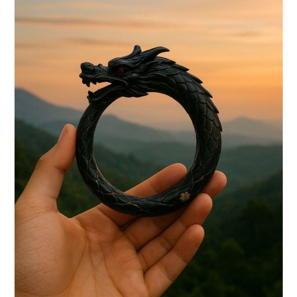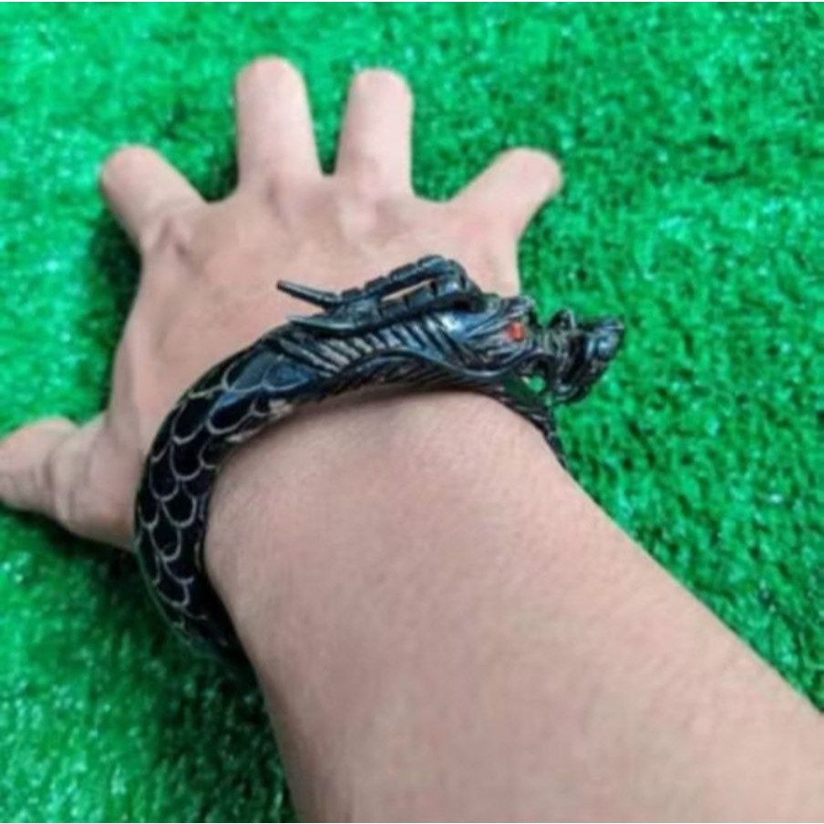 Gelang akar bahar hitam ukir naga tanduk tanam