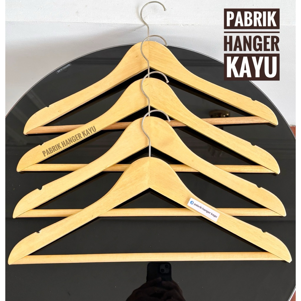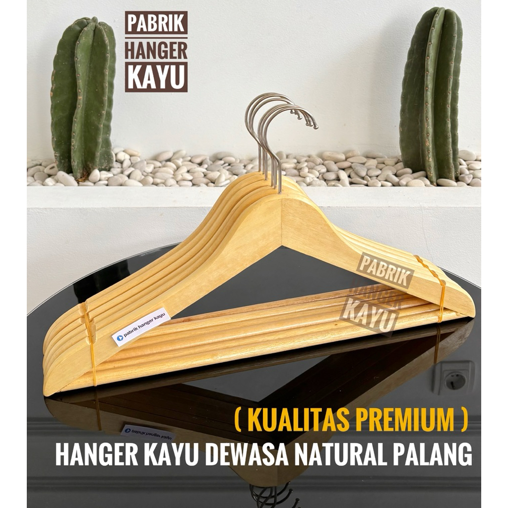 HANGER KAYU NATURAL PALANG DEWASA PREMIUM (ISI 10 PCS)