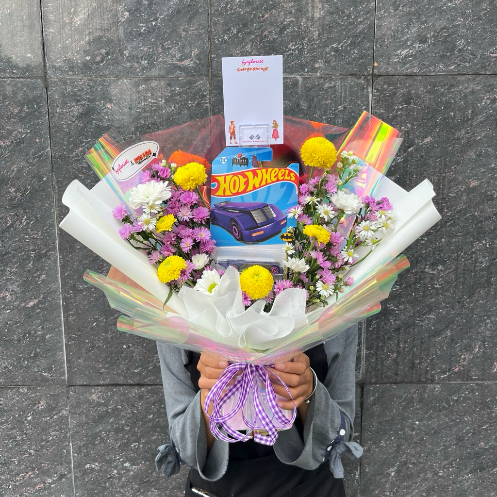 (Khusus Jogja) Single Hotwheels Bouquet With Fresh Flower