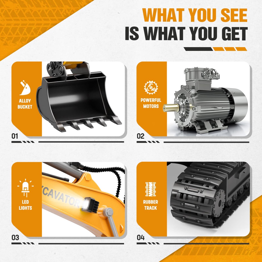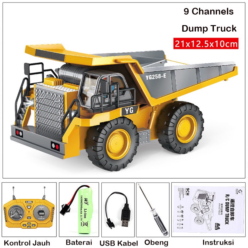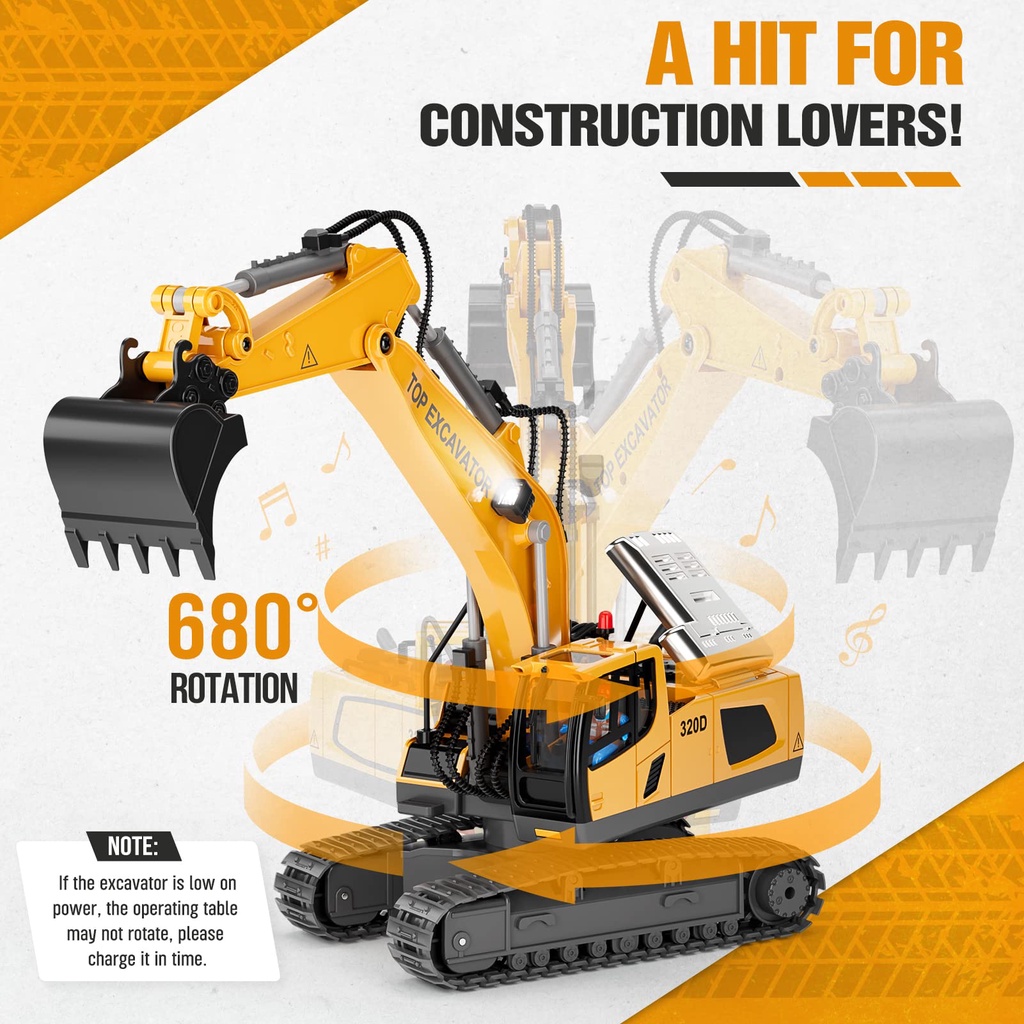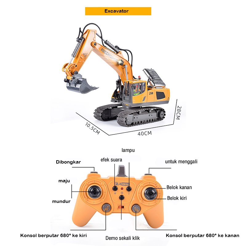 JOJOTOY Excavator Remote Control 2.4Ghz Alloy Ekskavator Remote Control 14 Channels RC Beko Penggali Truk RC Crawler Kendaraan Teknik Excavator Mobil Remote Truck