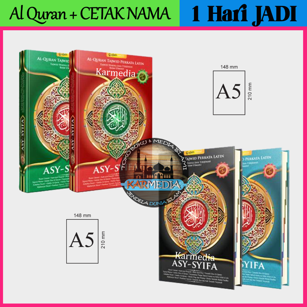 ( BISA CUSTOM CETAK NAMA ) A5 Al Quran Asy Syifa Perkata Latin Transliterasi Tajwid Warna Terjemah Rasm Utsmani - Al Fatih