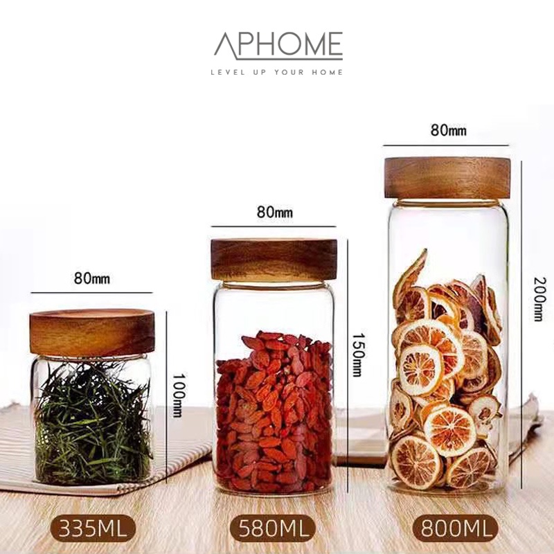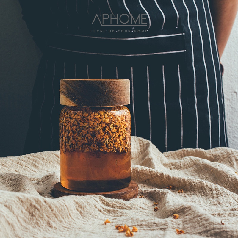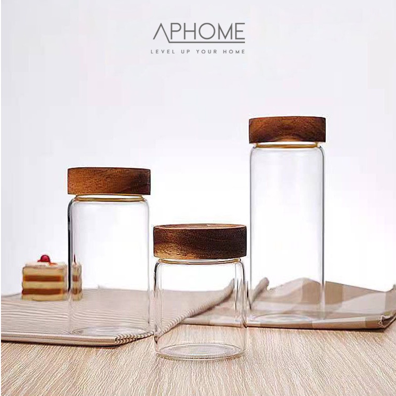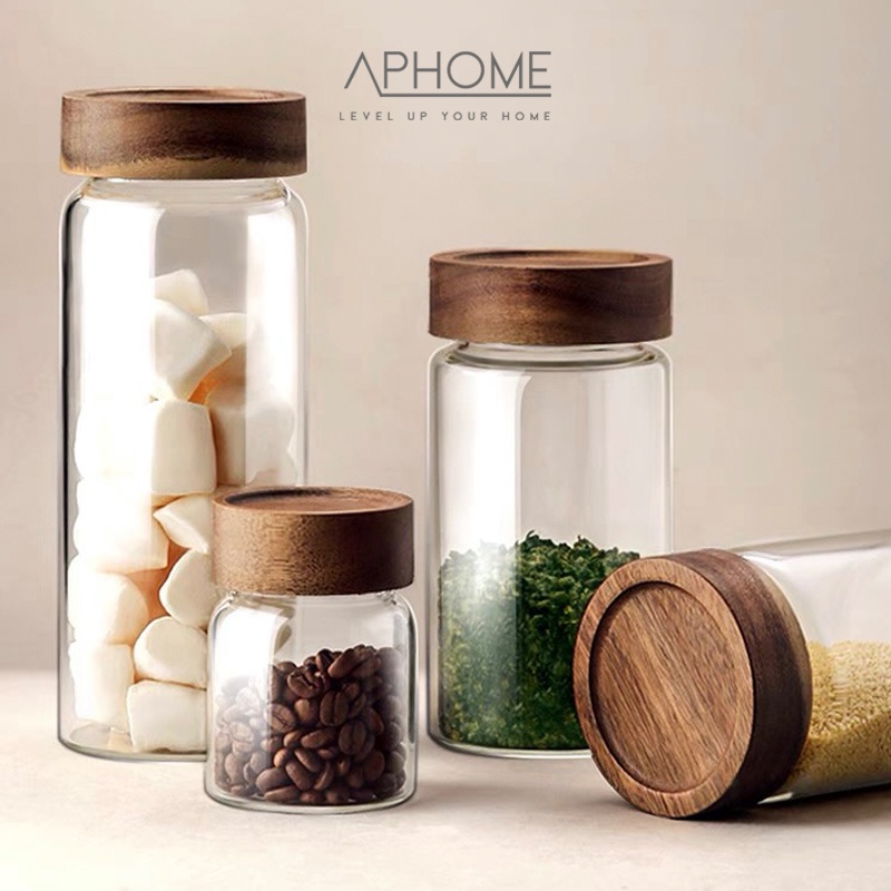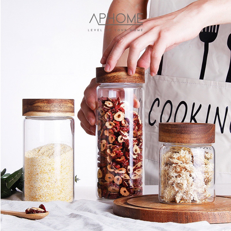 APHOME Toples Kaca Kontainer Makanan Dengan Tutup Kayu Toples Makanan GIRI