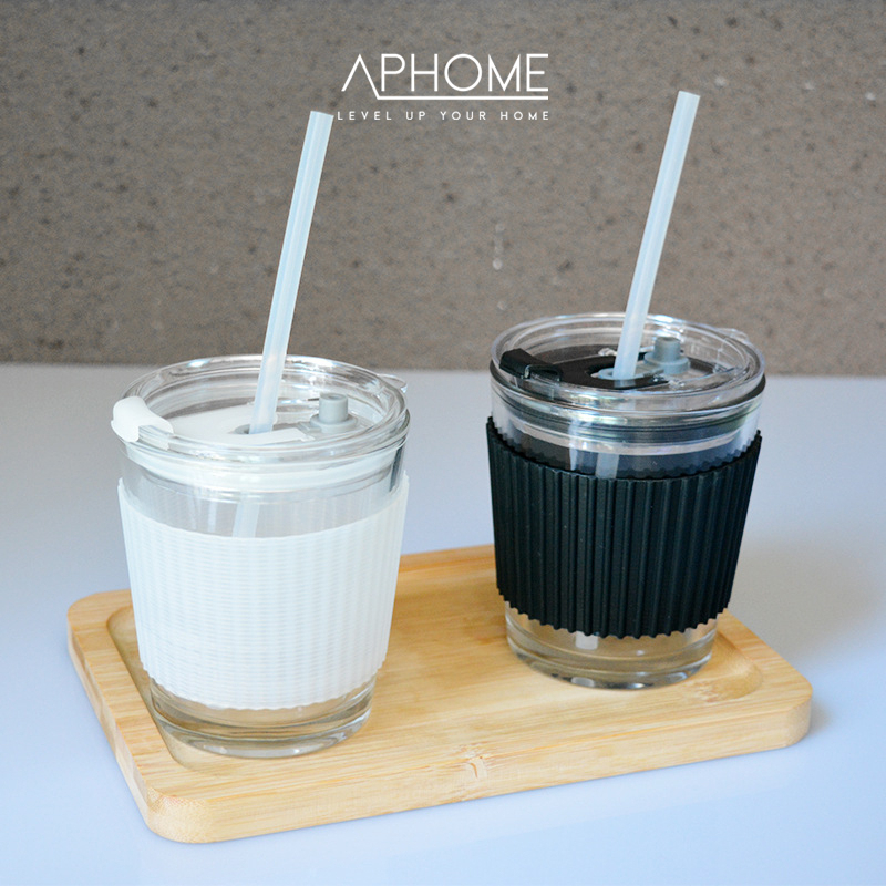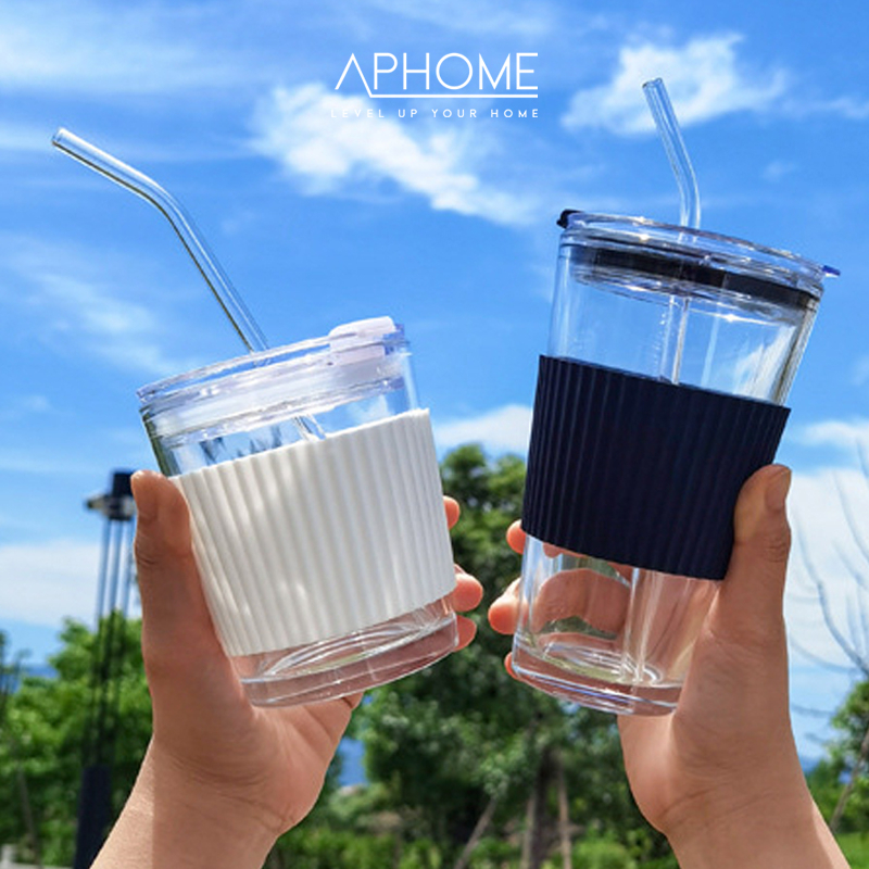 APHOME Tumbler Kaca Glass Tumbler Dengan Sedotan YURA