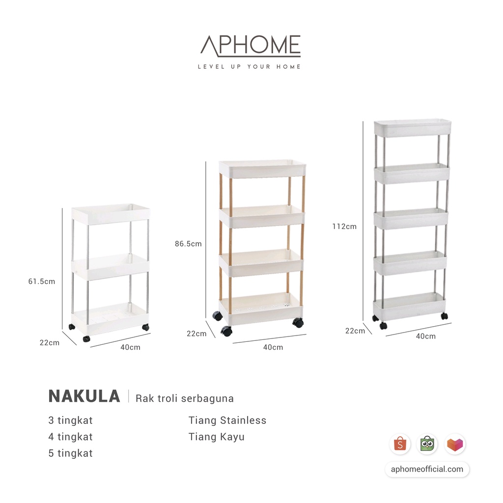 APHOME Rak Troli Rak Susun Rak Buku Rak Roda Rak Selip Rak Slim Ramping Rak Kamar Mandi Rak Dapur NAKULA