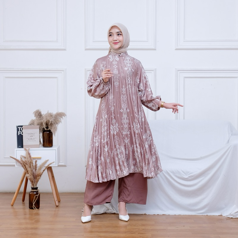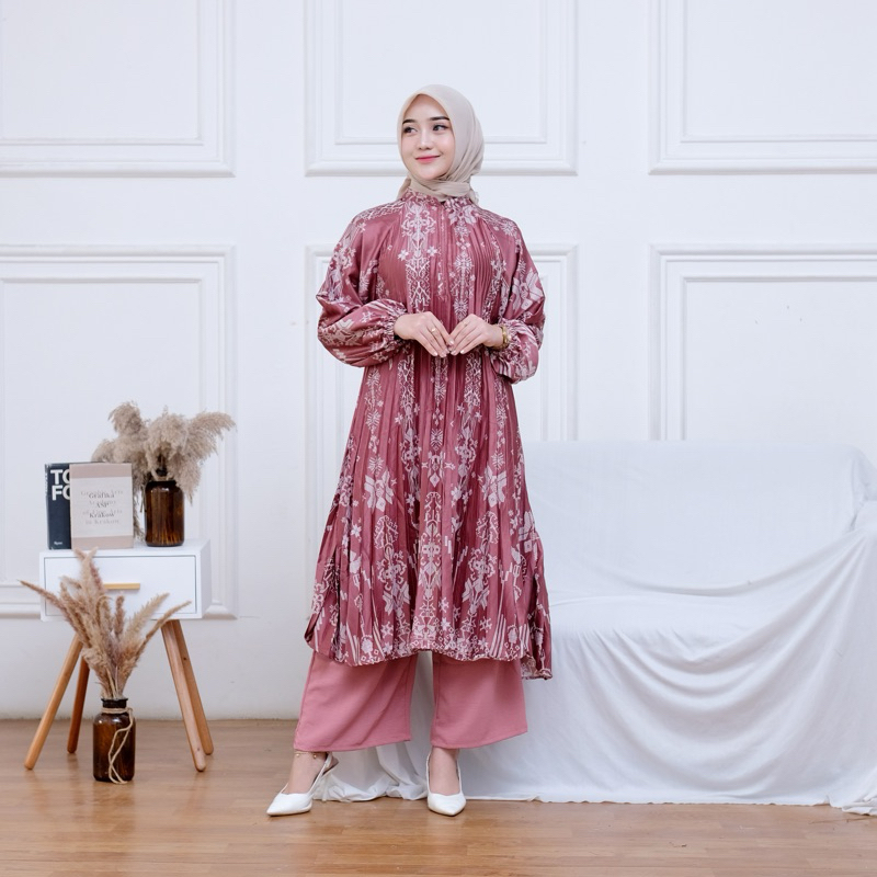 ONE SET NAILA TUNIK PLISKET - SETELAN LONG TUNIK PLISKET MOTIF NEW CELANA CRINKLE PREMIUM - ONE SET WANITA TERBARU
