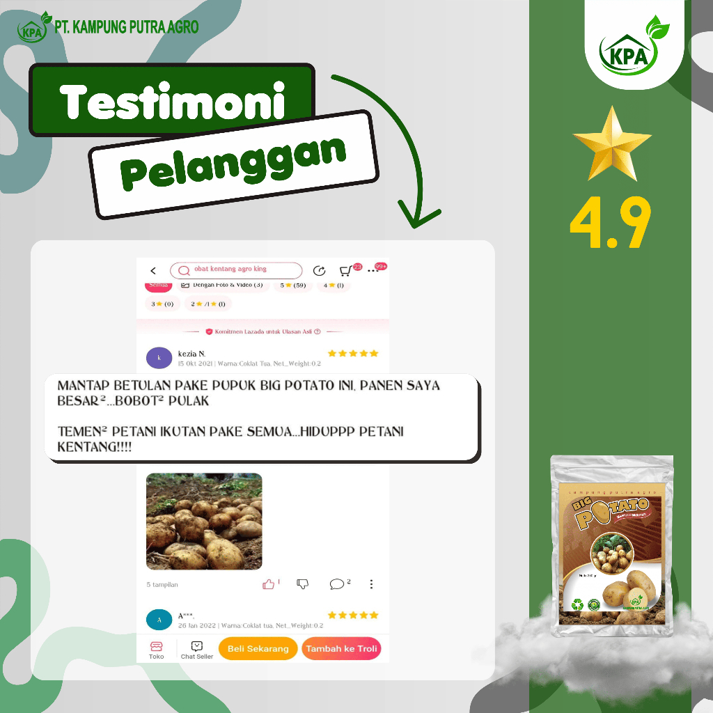 BIG POTATO 250gr-Formula untuk pertumbuhan serta Pembesar Umbi dan Penambah Ukuran Umbi Tanam kentang
