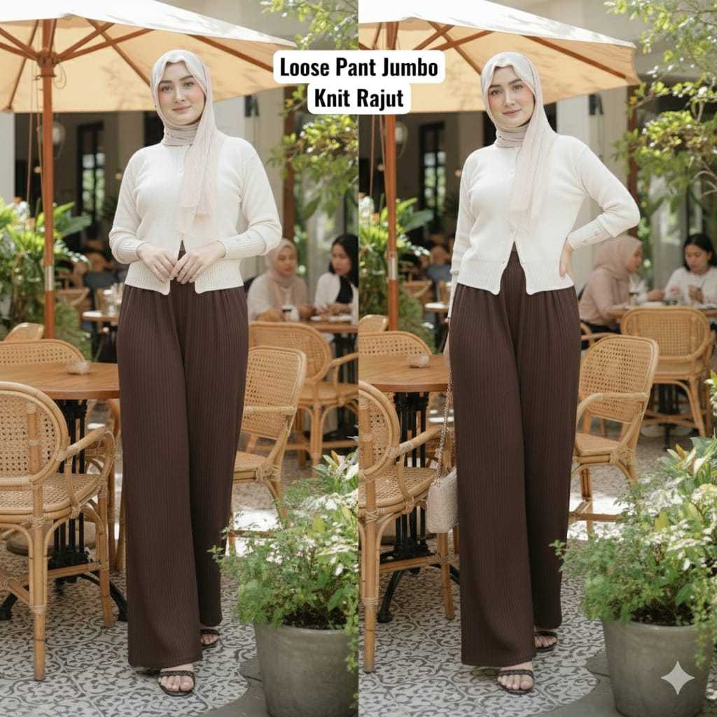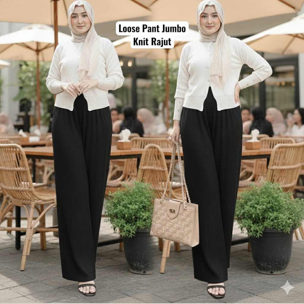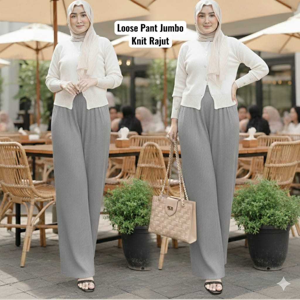 CELANA LOOSE PANT KNIT RAJUT HIGHWAIST JUMBO (BB 60-95 KG) SUPER JUMBO (BB 100-145 KG)