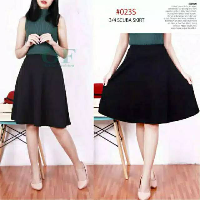 AY_ Rok Scuba midi flare//Rok scuba pendek//Rok pendek