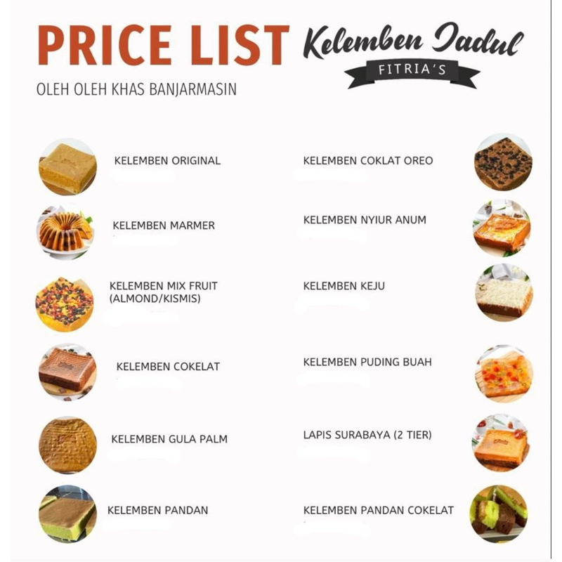 KELEMBEN JADUL FITRIA'S OLEH OLEH KHAS BANJARMASIN ORIGINAL 100% KELEMBEN ORIGINAL LAPIS SURABAYA KELEMBEN COKLAT KELEMBEN PANDAN KELEMBEN MARMER KELEMBEN KEJU KELEMBEN NYIUR ANUM KELEMBEN COKLAT OREO KELEMBEN PUDING BUAH KELEMBEN PANDAN COKELAT