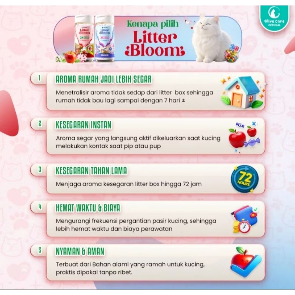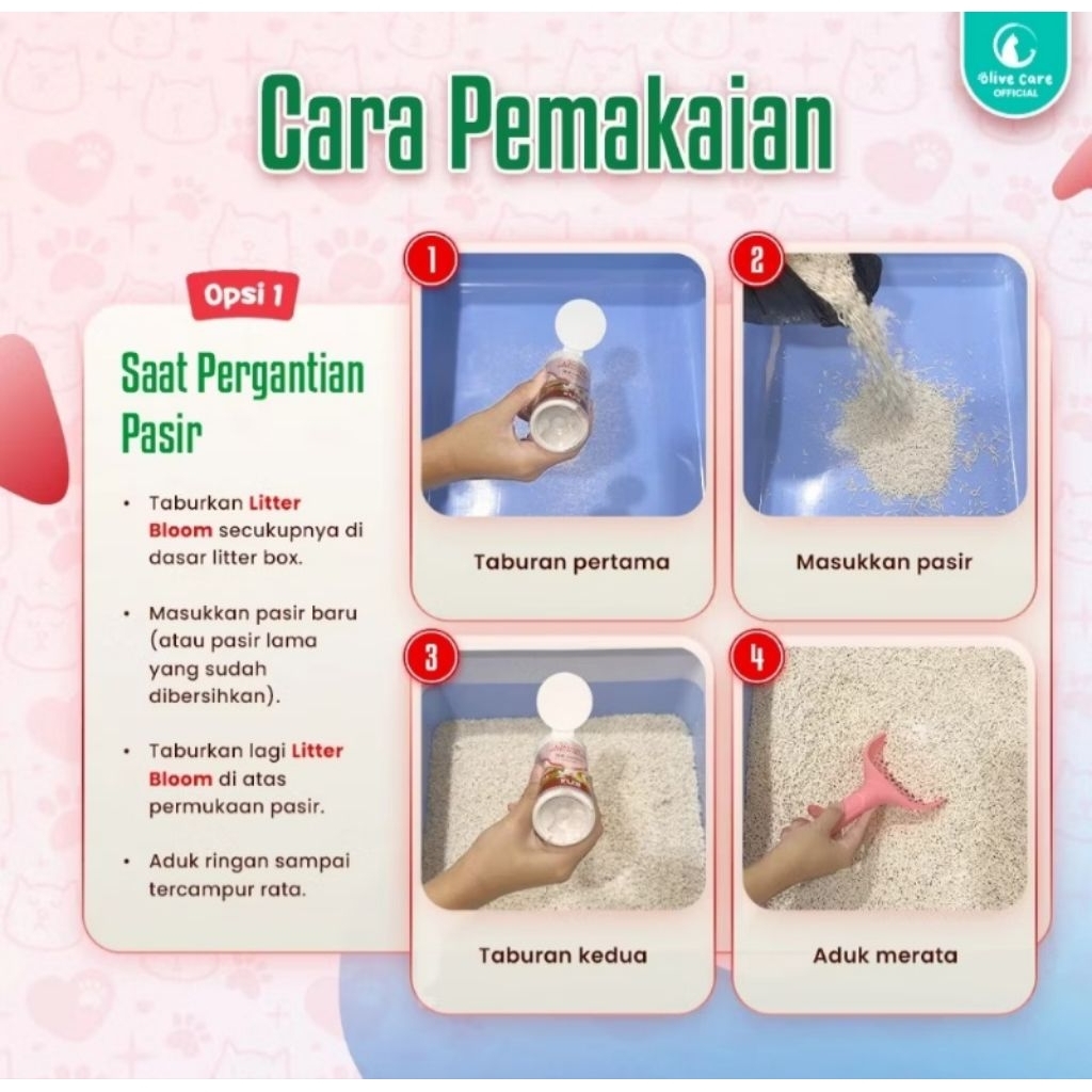 Litter Bloom Olive Care Penghilang Bau Pipis Pup Kucing Anjing Pewangi Litter Box Pengharum Litter Box