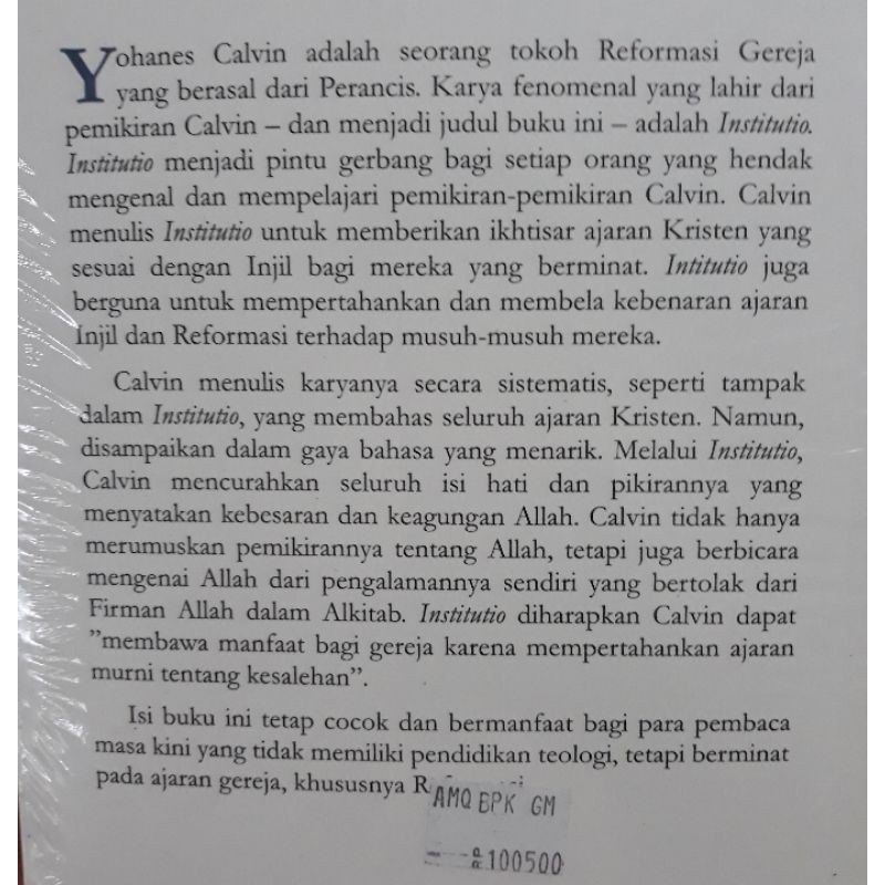 Institutio (new, segel) Reformasi Johanes Yohanes Calvin Kristen Doktrin Ajaran Bible Alkitab Kitab