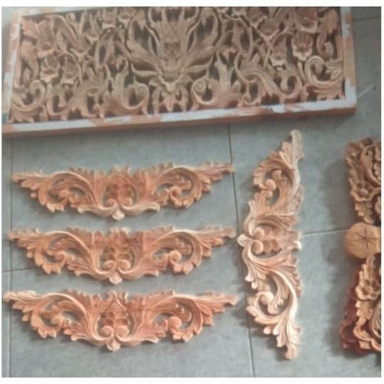Ukiran kayu mahkota anggur ornamen ukir tempel kayu mahoni BM2312