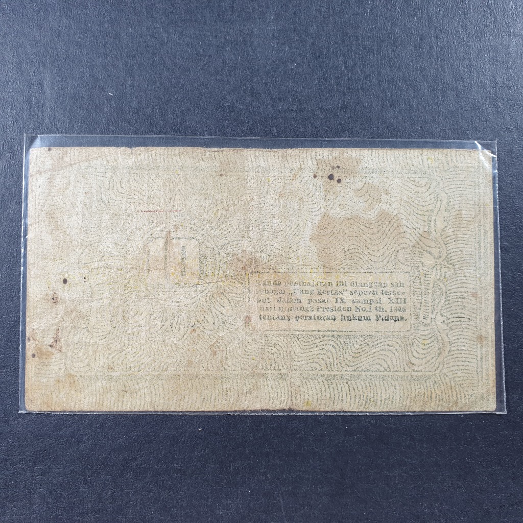 Uang Kuno Indonesia 10 Rupiah Daerah Sumatera Bukit Tinggi 1948 VG
