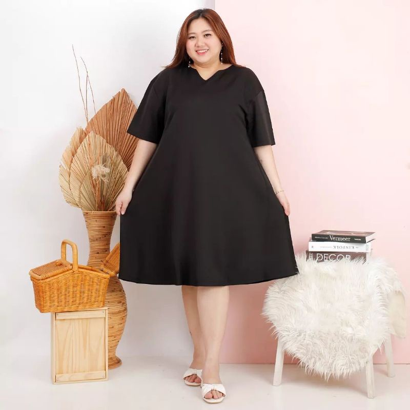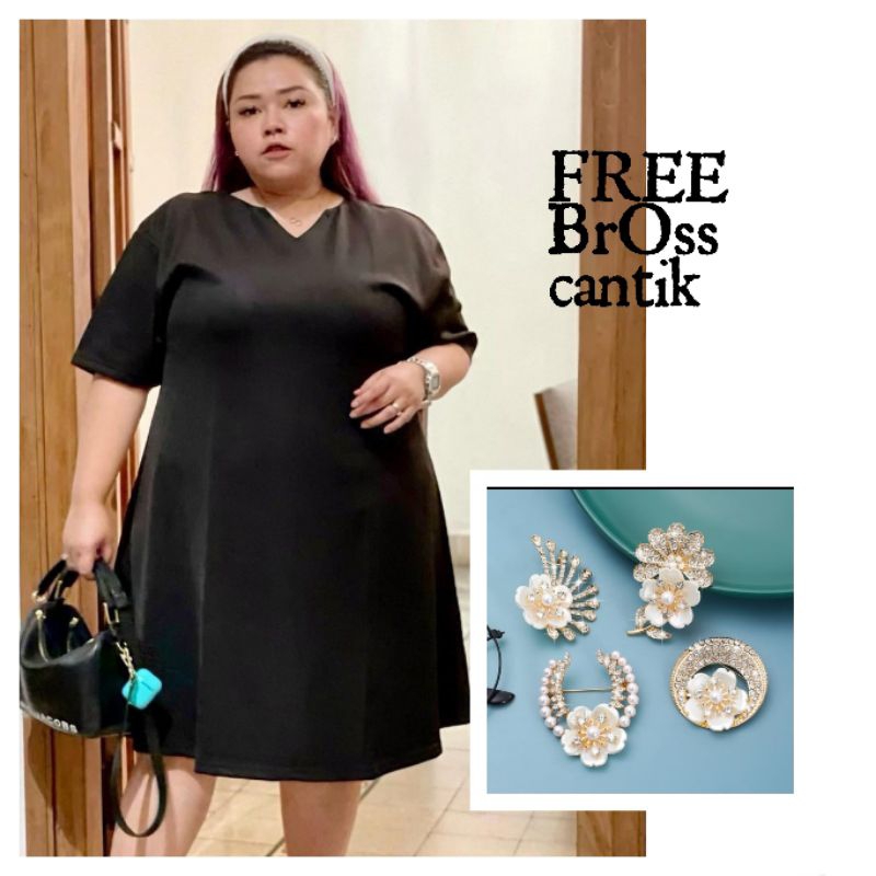 FREE BROSS HANZZELO SIMPLY DRESS basic hitam black scuba polos