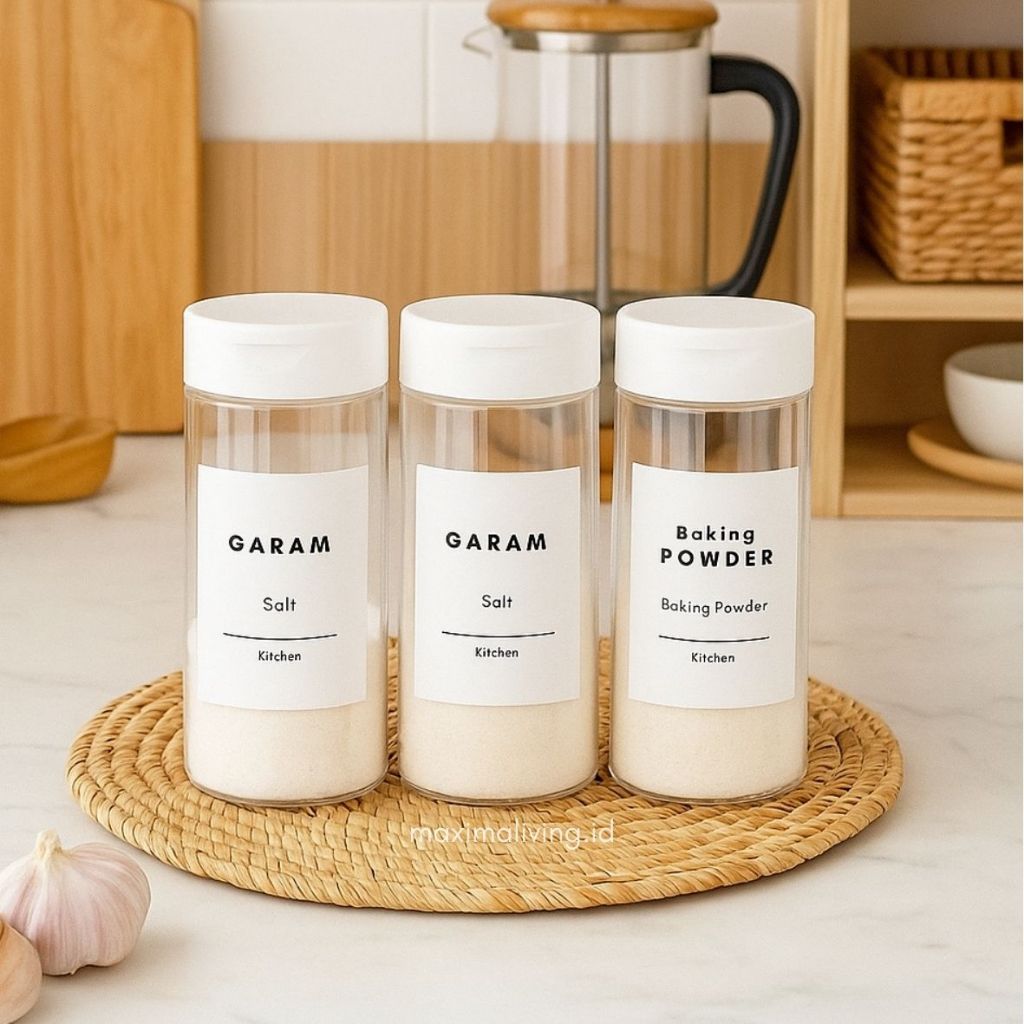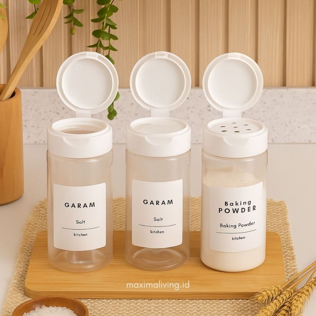 Decoliving Toples Bumbu Dapur 140ml Aesthetic – Tabur Lubang Besar & Lubang Kecil (Free Label Anti Air)