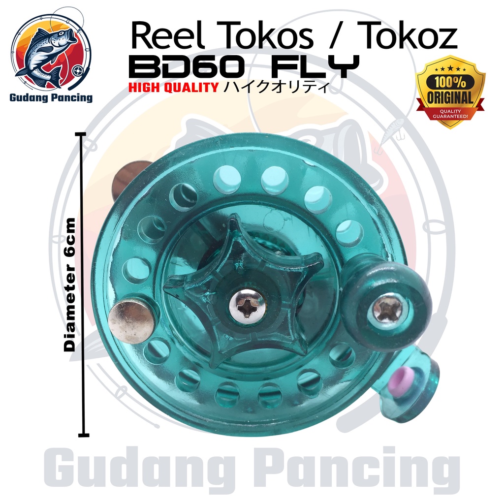 Tokos Fly Fishing Reel Mini Tokoz BD60 Gagang Aluminium Bahan Crystal Plastic Plastik Kristal Kuat Stabil Fleksibel untuk diputar dan mudah dioperasikan saat menggulung