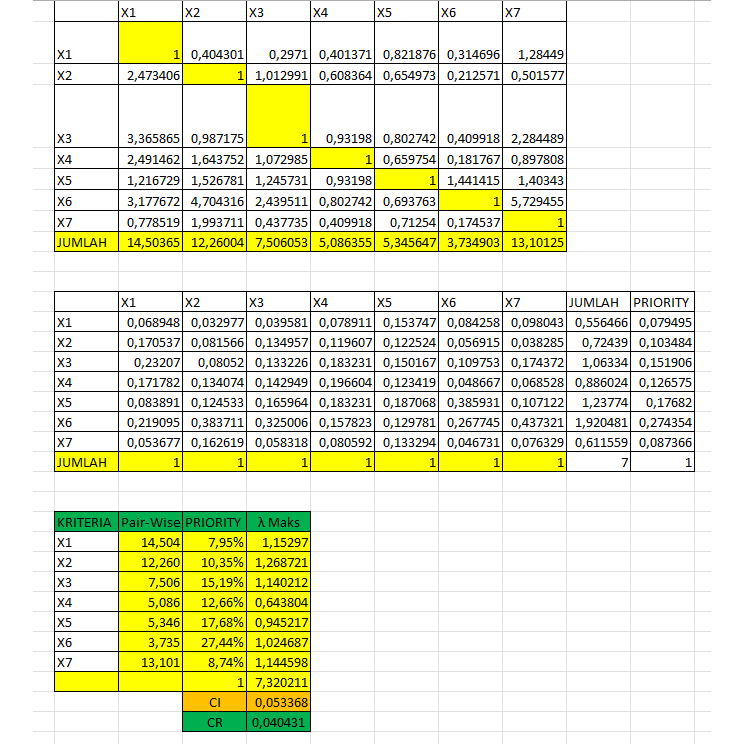 Excel Siap Isi/Template untuk Analisis Analytical Hierarchy Process (AHP) formula sudah otomatis