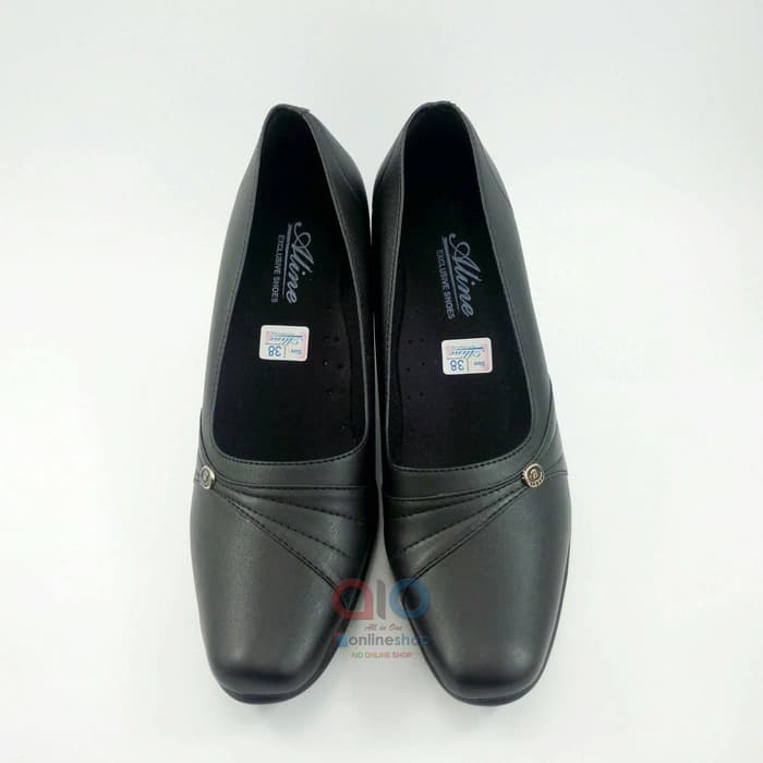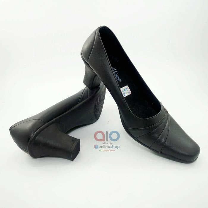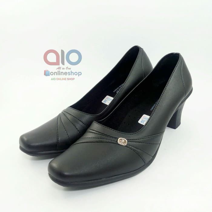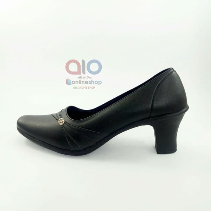 SEPATU WANITA PANTOFEL Hak 7 Cm High Heels Formal Kerja Hitam Kilap AW22