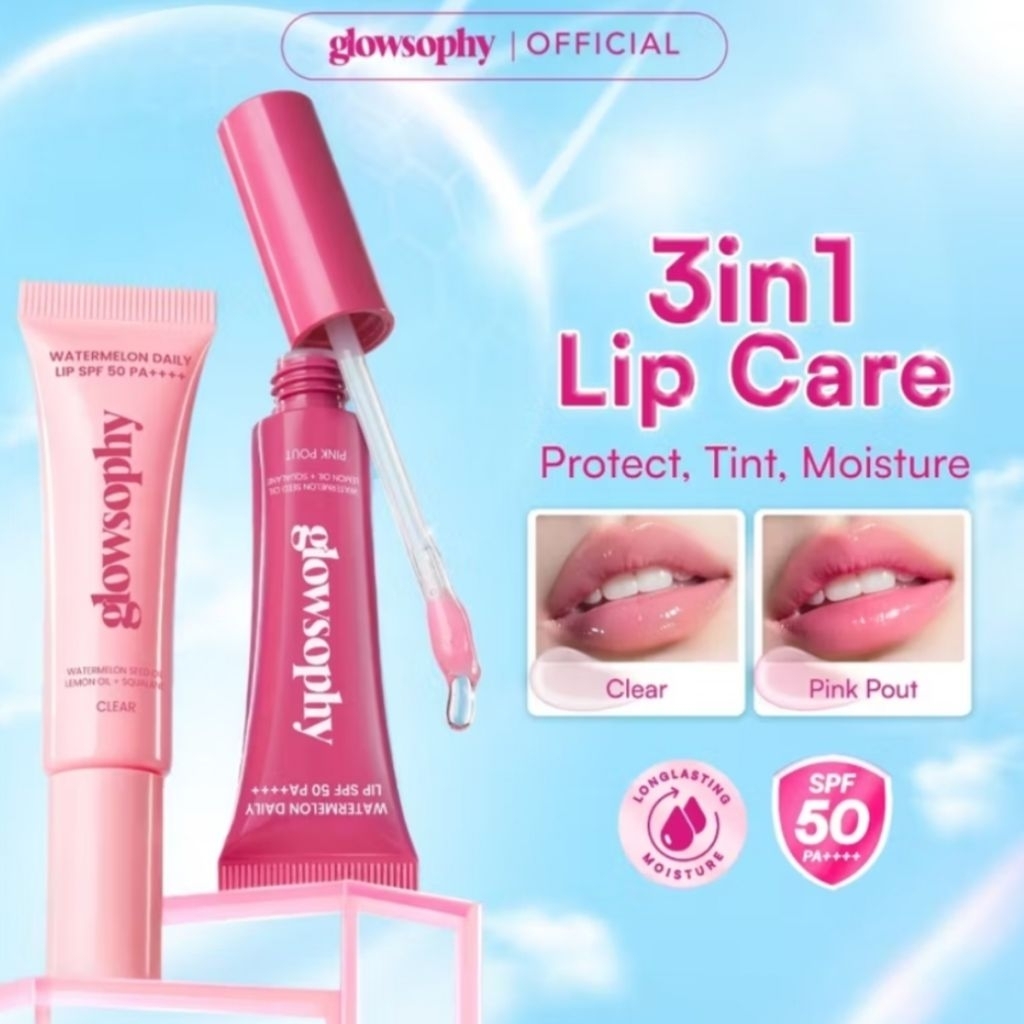 [NEW LAUNCH] Glowsophy Watermelon Daily Lip SPF 50 PA++++ - Melindungi dari sinar UVB dan UVA, Menjaga bibir tetap lembap, lembut, dan sehat, Kilau natural untuk bibir lembut dan tampak sehat sepanjang hari