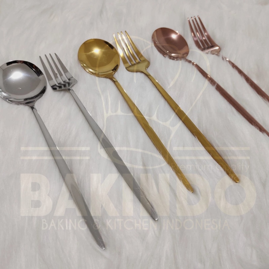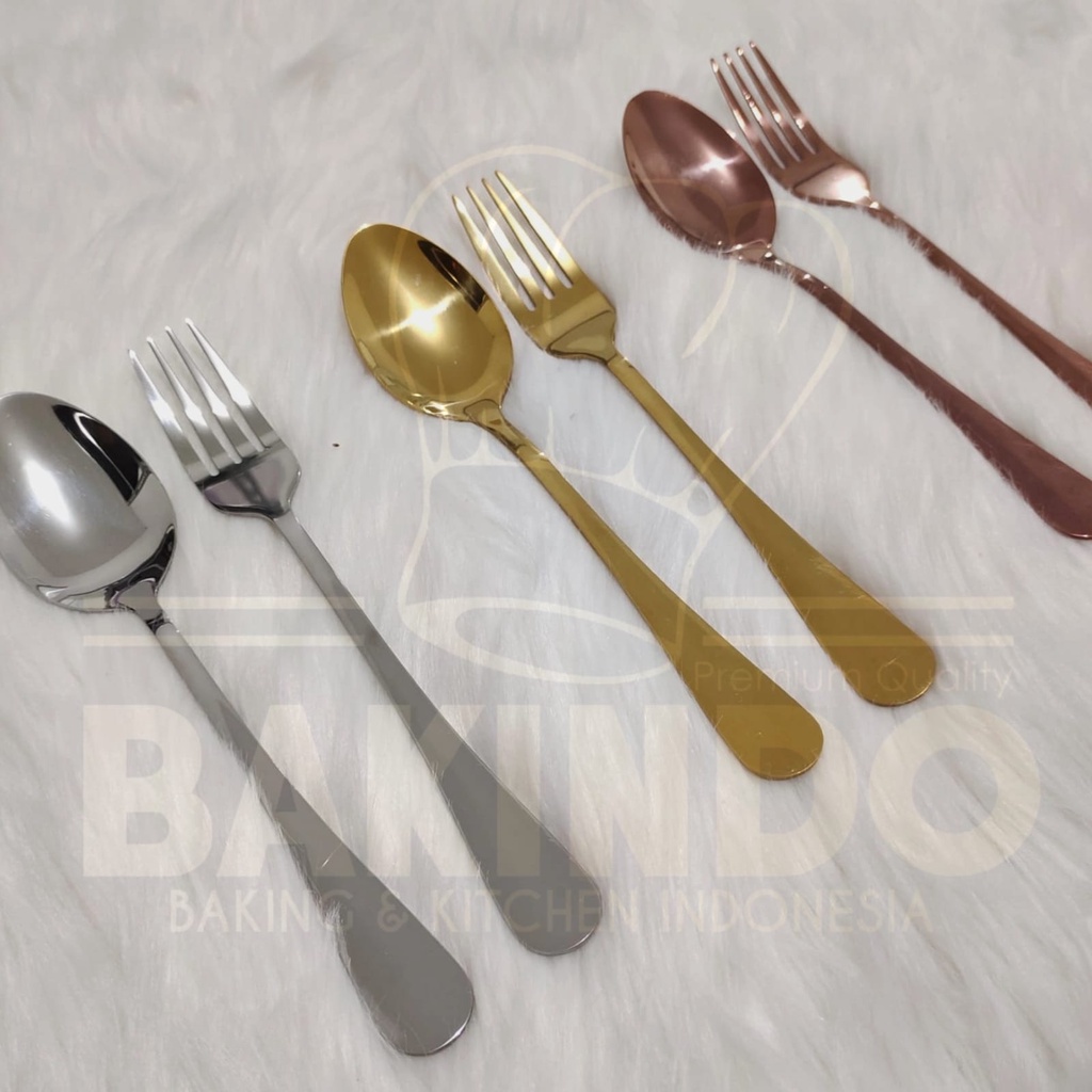 BAKINDO Sendok Garpu Stainless Steel Tebal Gold - Alat Makan Korea