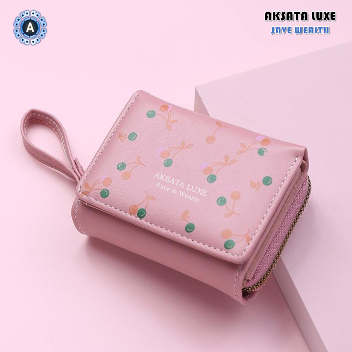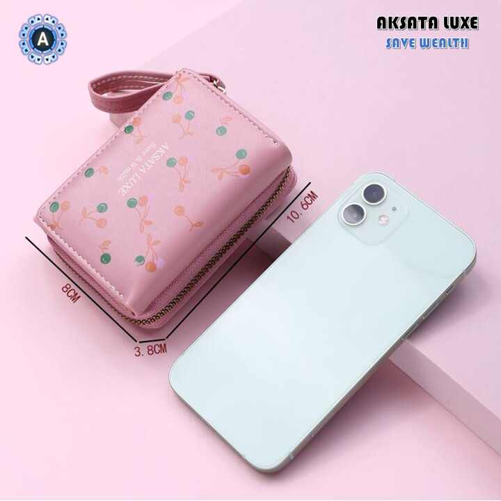 Aksata Luxe | Dompet Wanita Elegan Dompet Motif Cherry Desain Cantik Multifungsi penyimpan Uang, Koin, kartu dan Foto