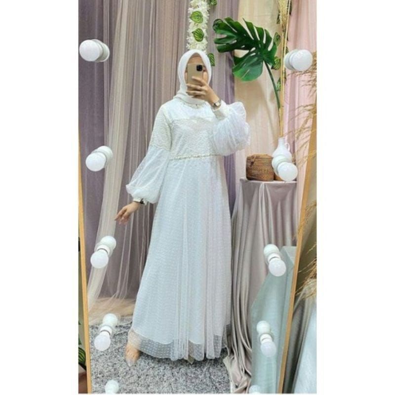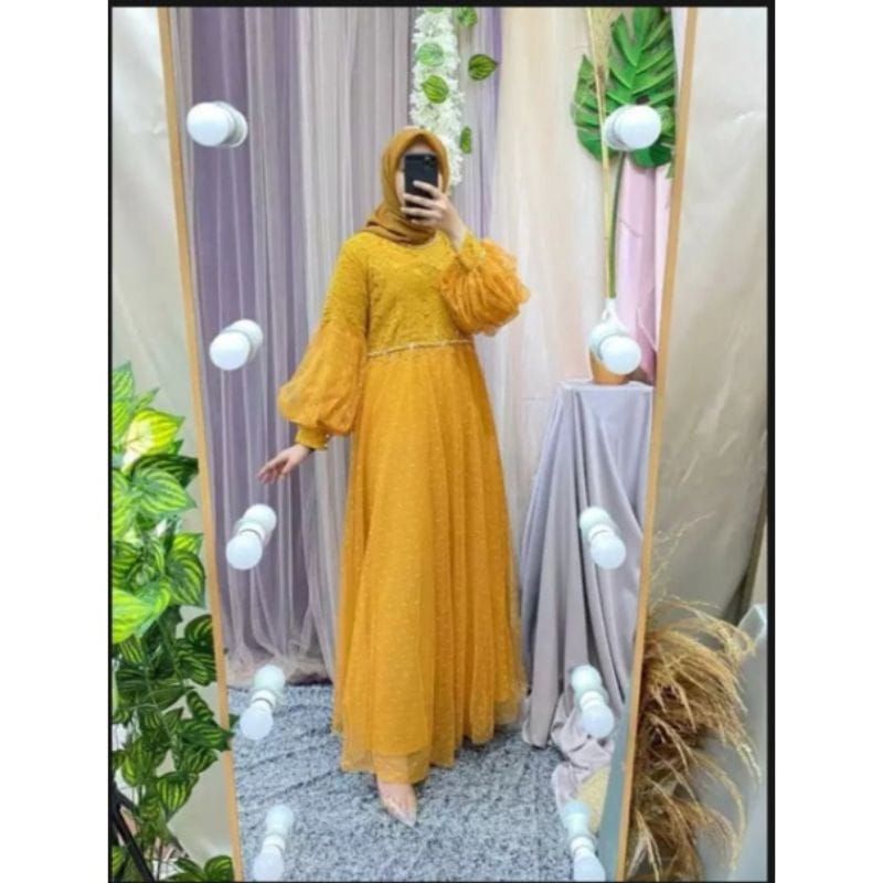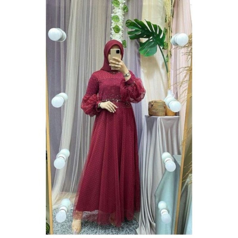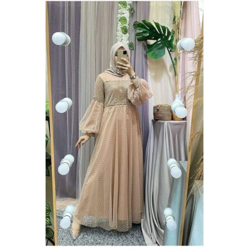 RAWNIE DRESS MAXY LENGAN BALON//BAJU PESTA TERMURAH (SIAP KIRIM)