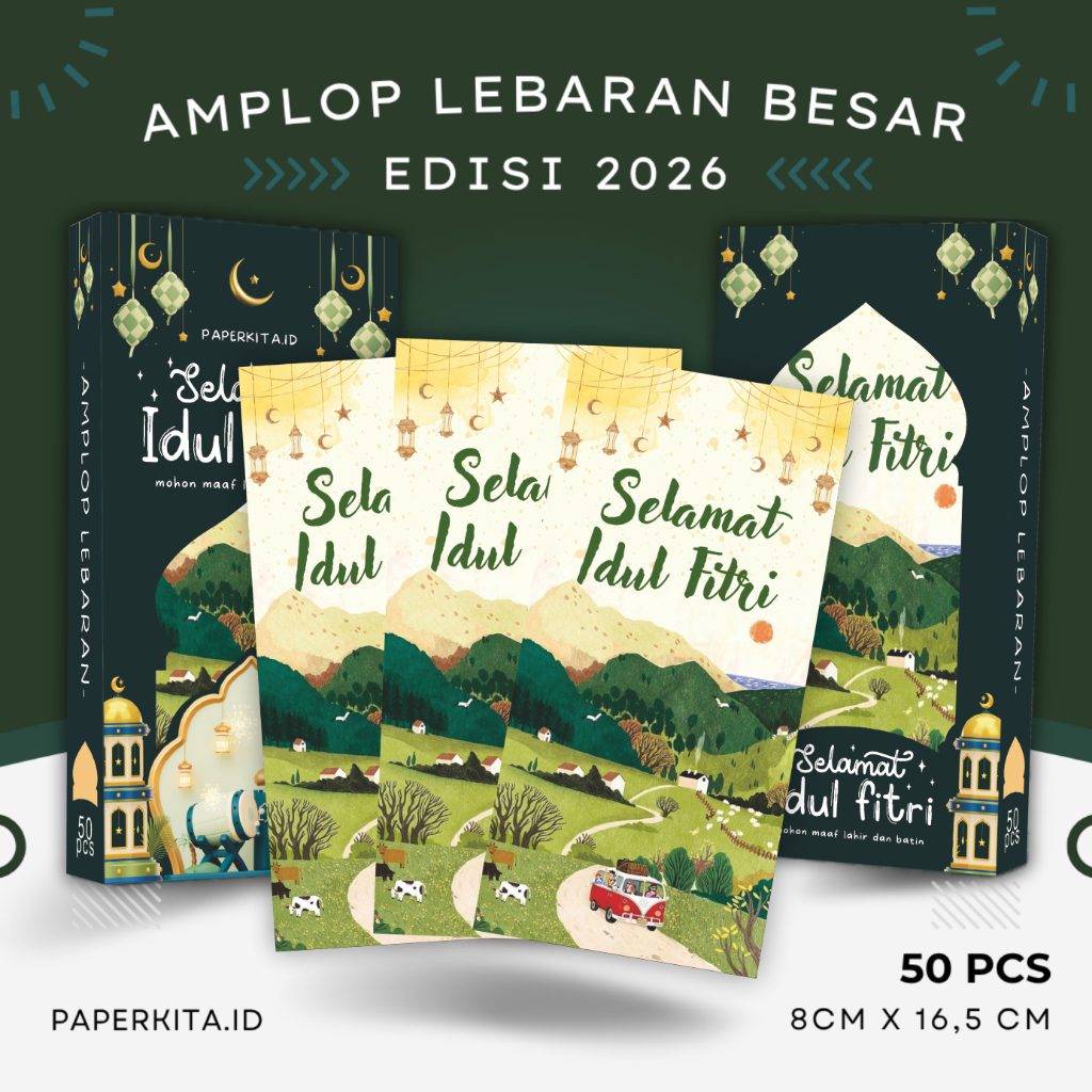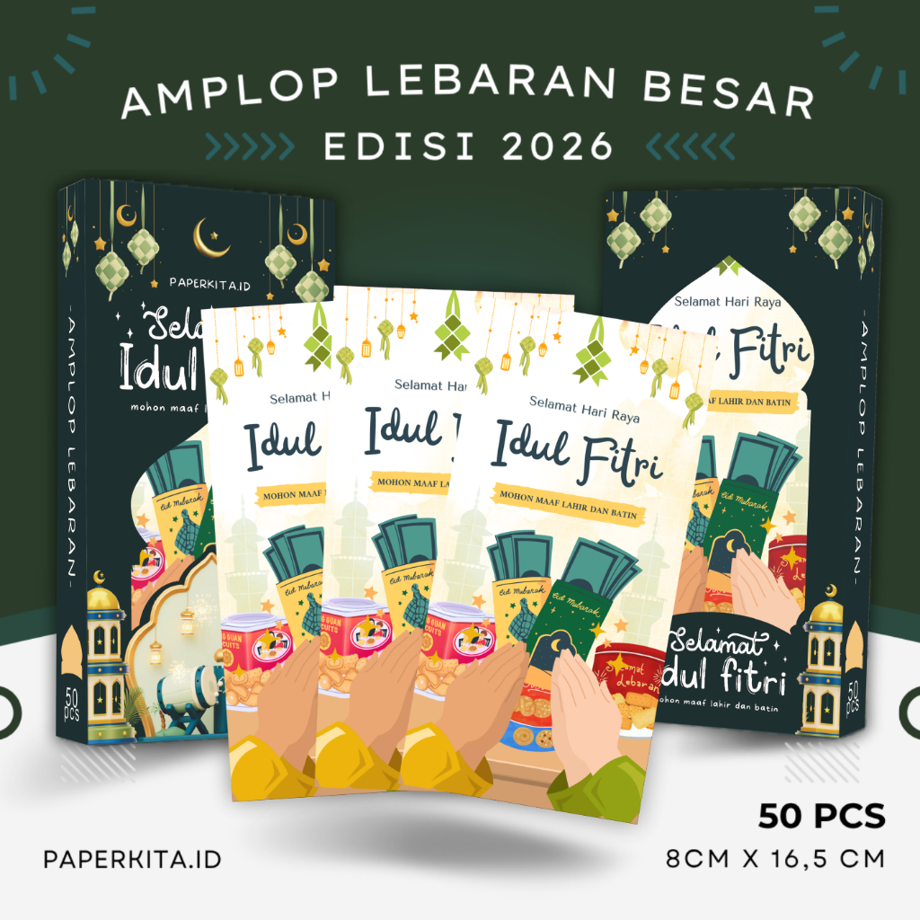Amplop Lebaran Idul Fitri 2026 Ukuran Besar Uang THR Tanpa Lipat Box isi 50pcs Kwalitas Premium
