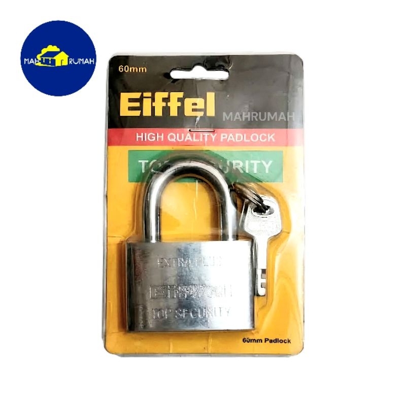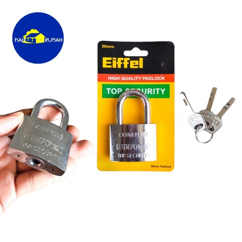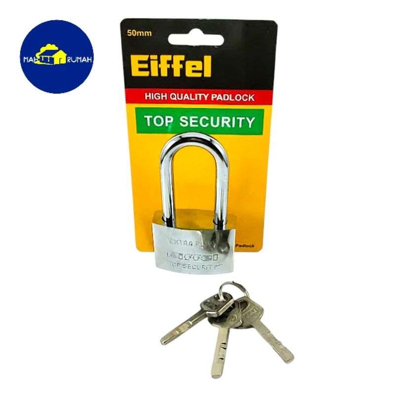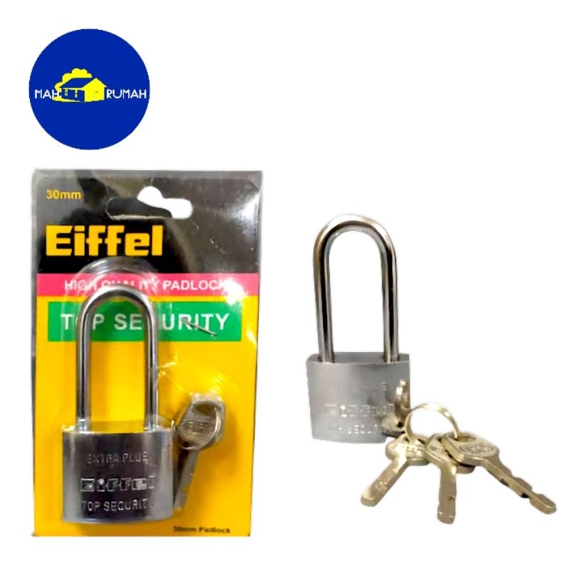 Gembok Besi Baja PUTIH 30mm 40mm 50mm 60mm Leher Panjang Pendek - EIFFEL