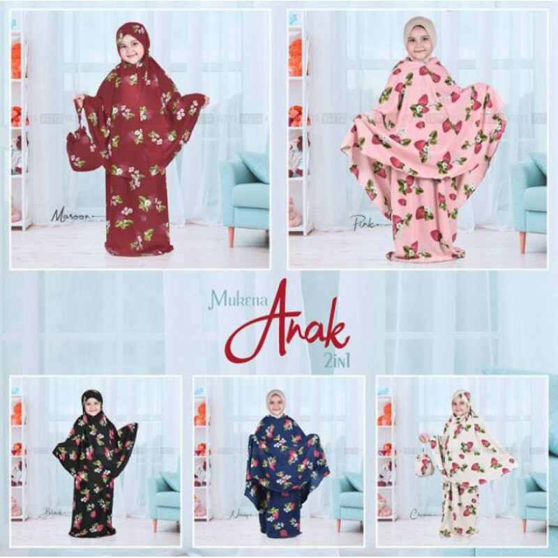Mukena Anak Motif Strawberry 2in1