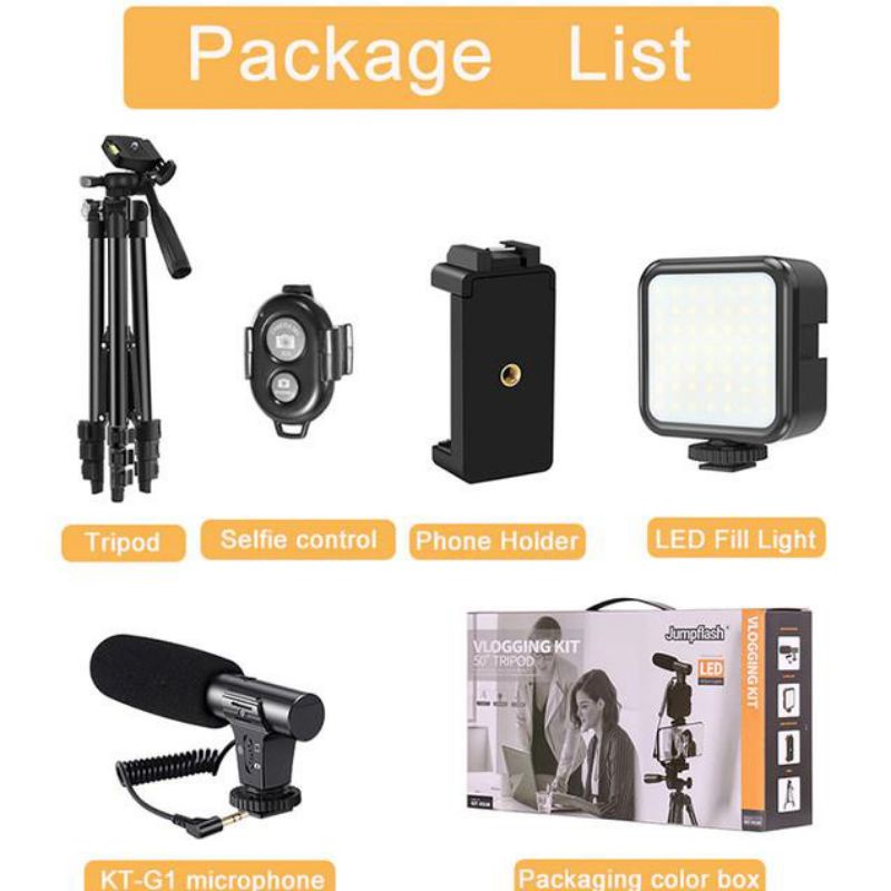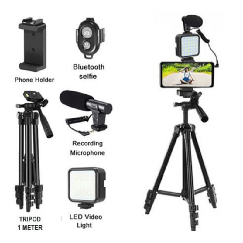 RY - Paket vlog LED lampu tripod mic holder HP all in one vlogging kit 05LM