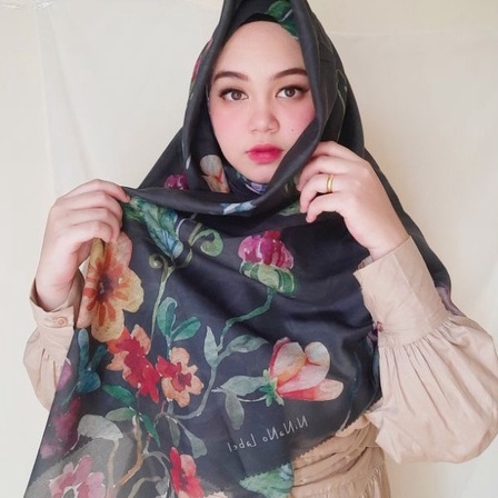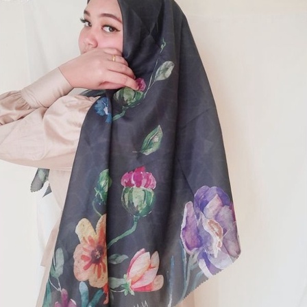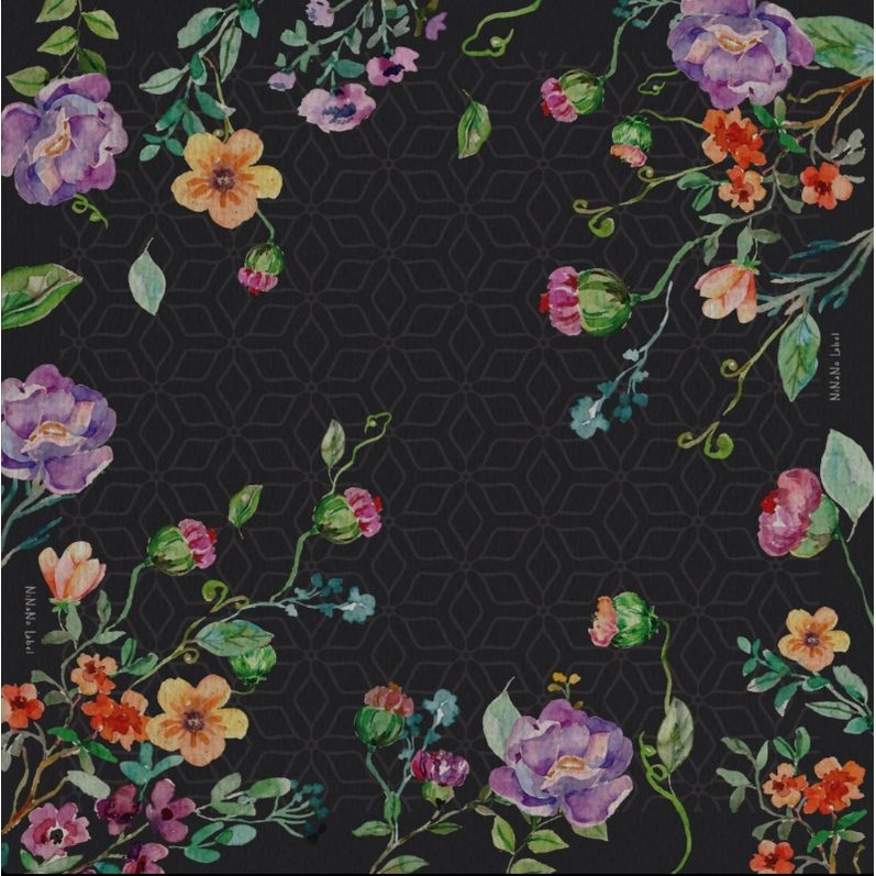 Sweet Spring Series Black / Ninano Label / Hijab segi empat motif voal /Jilbab segi empat motif voal